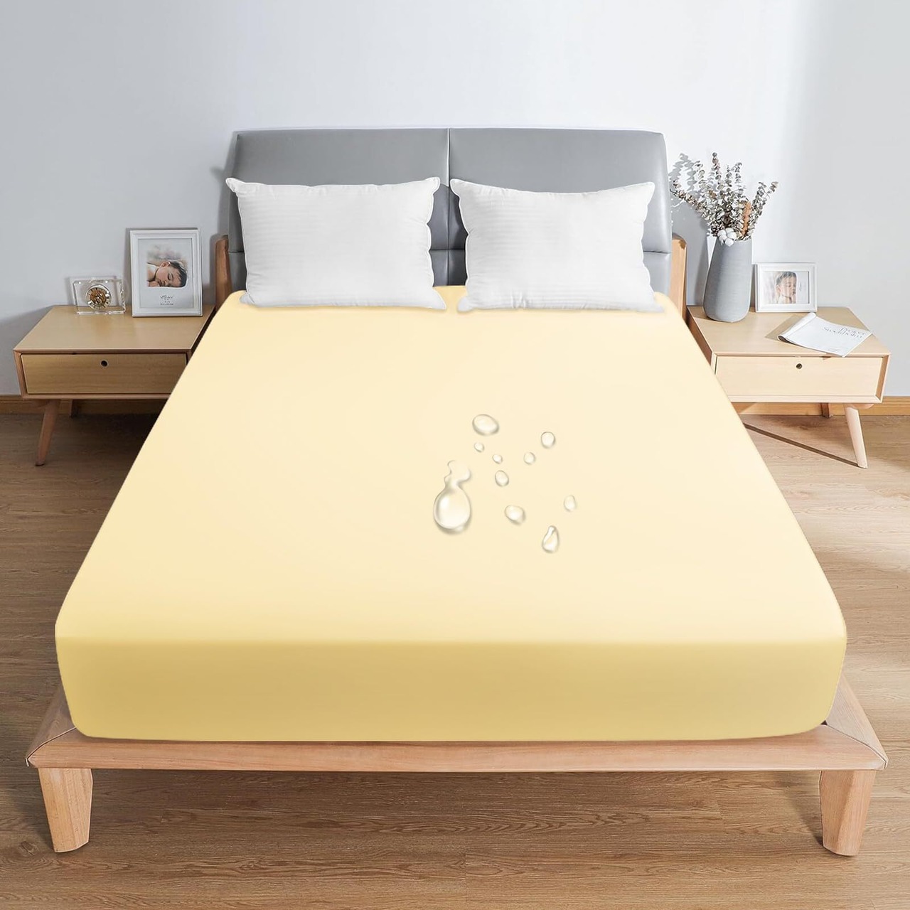 ボックスシーツ 防水シーツ 2025 高密度生地 マットレスカバー 五面防水 吸水速乾 シングル セミダブル ダブル クイーン ベッドカバー 通気性 洗える 介護用 シーツ 防ダニ 抗菌 防臭 全周ゴム付き ズレ防止 赤ちゃん 大人用 (イエロー, シングル 100*200cm)