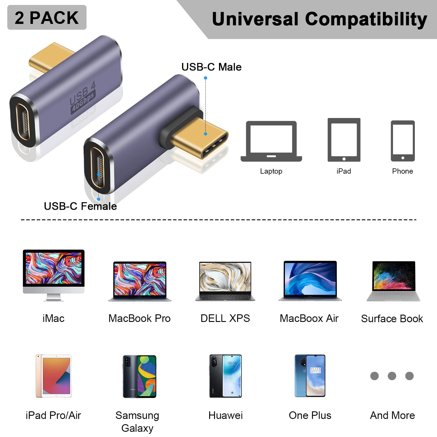 【 USB Type C 変換アダプタ】:90度USB Cアングルデジグは、USB C、USB 4、Thunderbolt 4/3ケーブルに最適で、ケーブルを隠して見栄えを良くし、ワイヤーの混乱を防ぎます。 追加のドライバー/ソフトウェアは必要ありません。