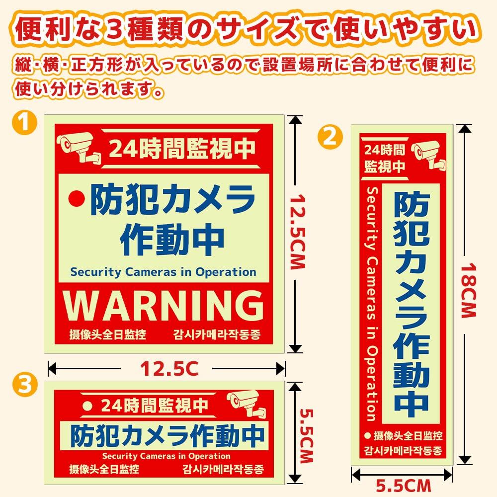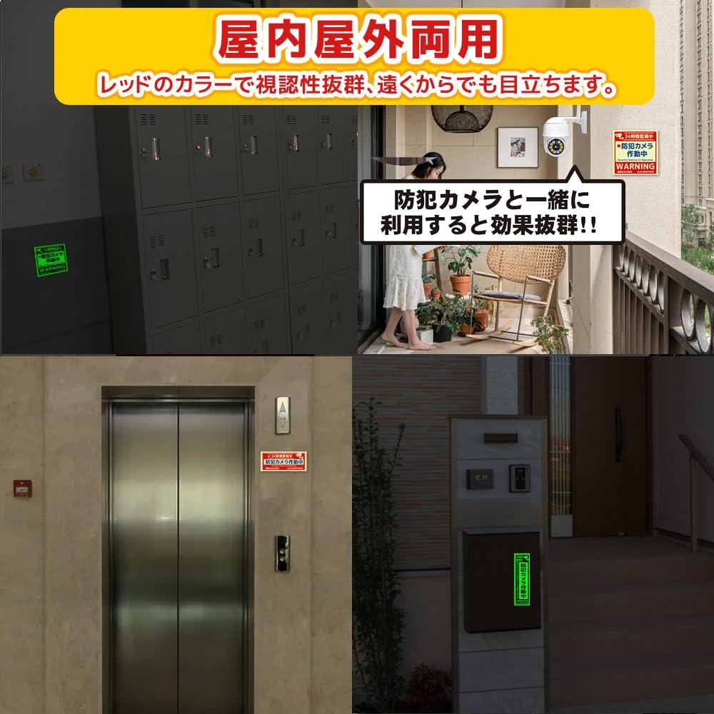 セキュリティーステッカー 蓄光 防犯ステッカー 【蓄光タイプ】 防犯シール 約10時間持続発光 防犯カメラ作動中 防犯カメラステッカー 屋内屋外両用 耐光/耐水/耐候素材 色褪せしにくい(ボックス型)