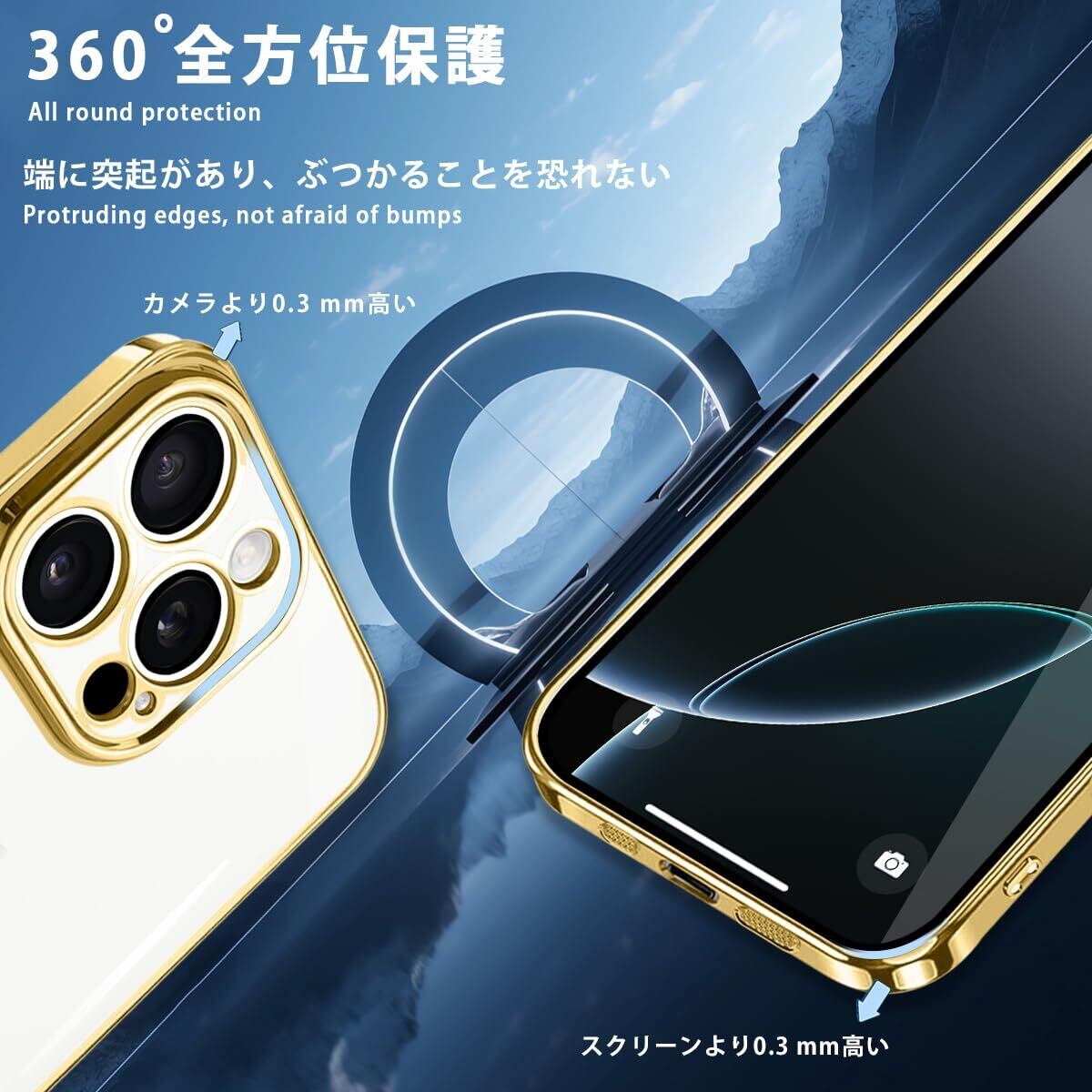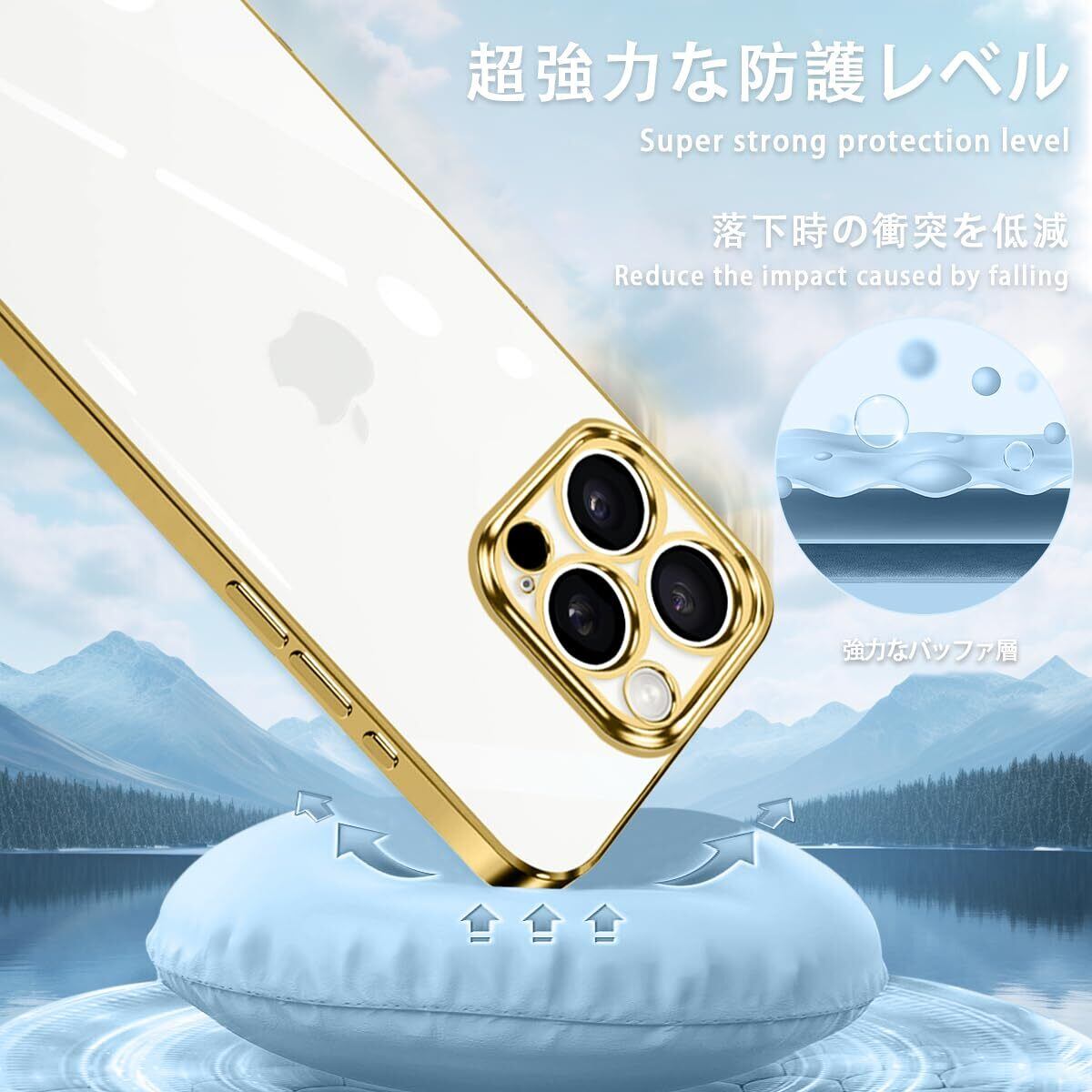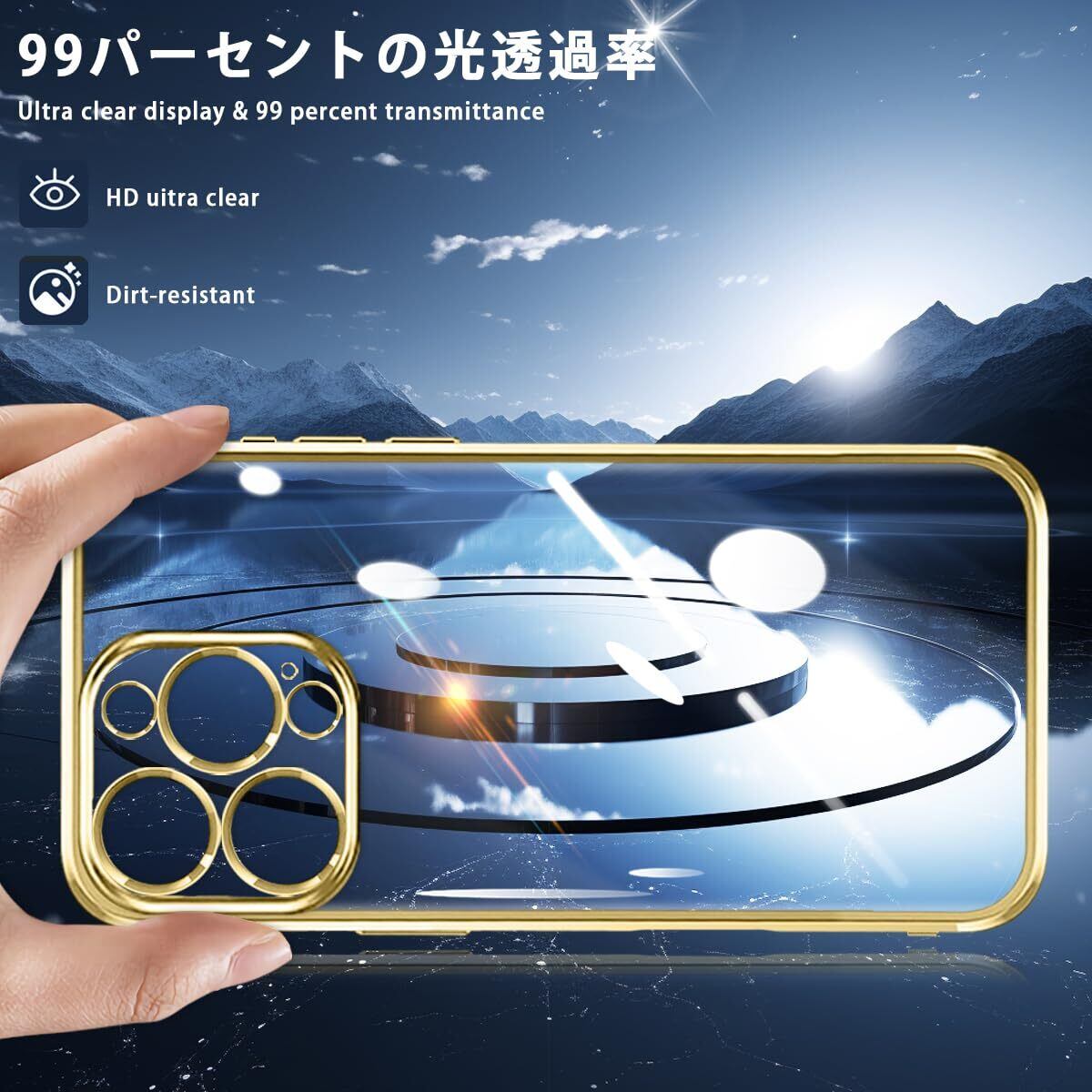 iPhone16 Pro ケース クリア アイフォン16Pro スマホケース メッキ加工 耐衝撃 カバー 透明 TPU レンズ保護 ストラップホール付き 薄型 黄変防止 擦り傷防止 人気 (ゴールド)
