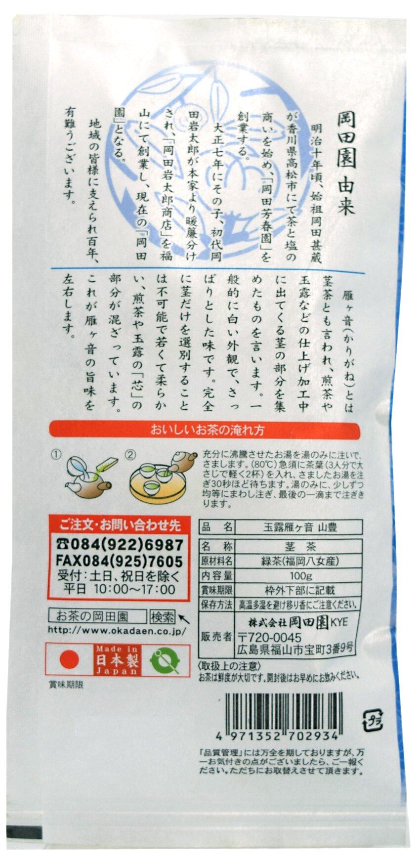 「品質管理」には万全を期しておりますが、万一お気づきの点がございましたら、ご一報ください。ただちにお取替えさせていただきます。株式会社岡田園 〒720-0045 広島県福山市宝町3-9 TEL084-922-6987 受付:土日、祝日を除く 平日10:00~17:00