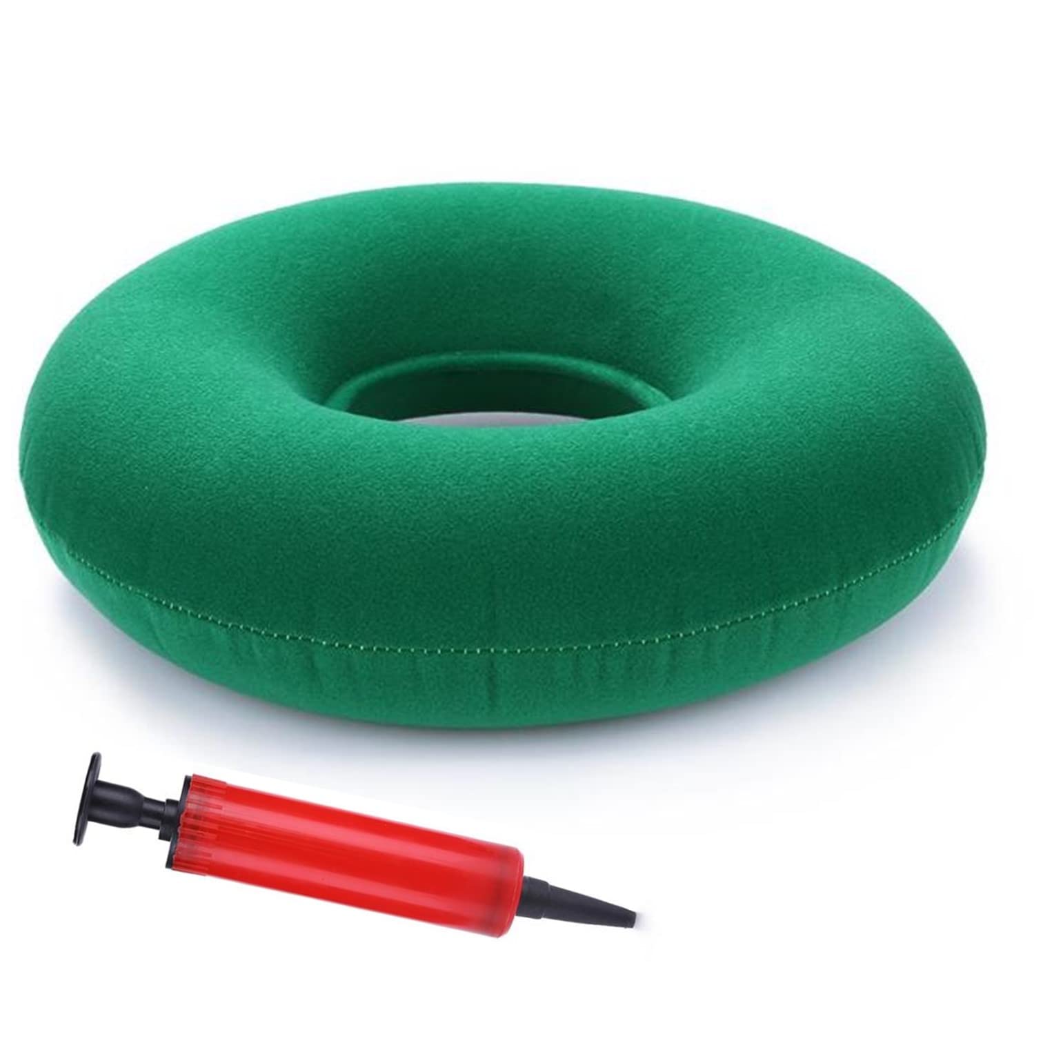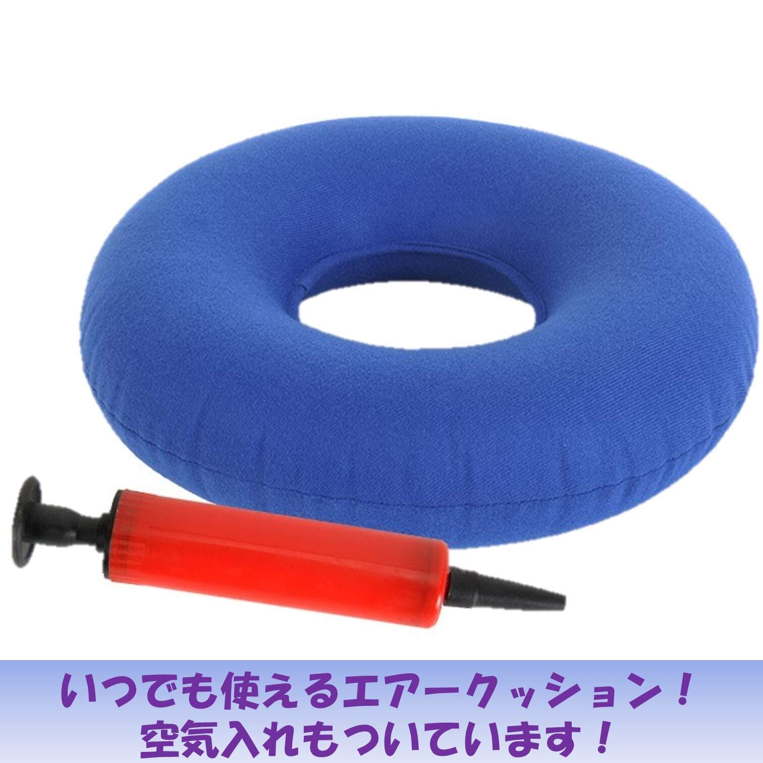 【特価セール】エアークッション エアーポンプ 携帯 座布団 ドーナツ クッション 円座クッション 枕 ドーナツクッション 椅子 ざぶとん 座椅子 (グリーン)
