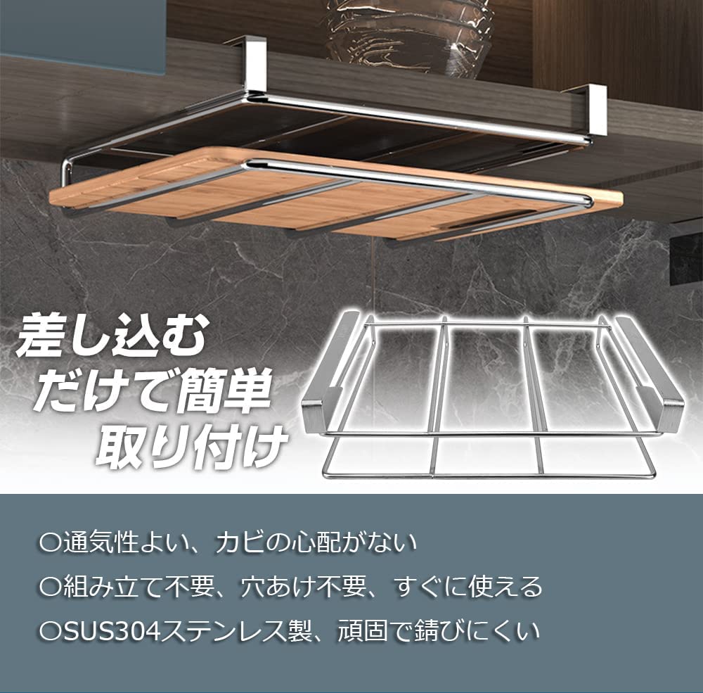 【新春セール】GOENDR まな板 収納 戸棚下まな板ホルダー まな板スタンド キッチン 布巾ハンガー 吊り戸棚 吊り下げラック 戸棚下ラック キッチン吊り戸棚下 ステンレス製 穴あけ不要 ネジ止め不要【奥行き25.8㎝】 | asaRulu0511