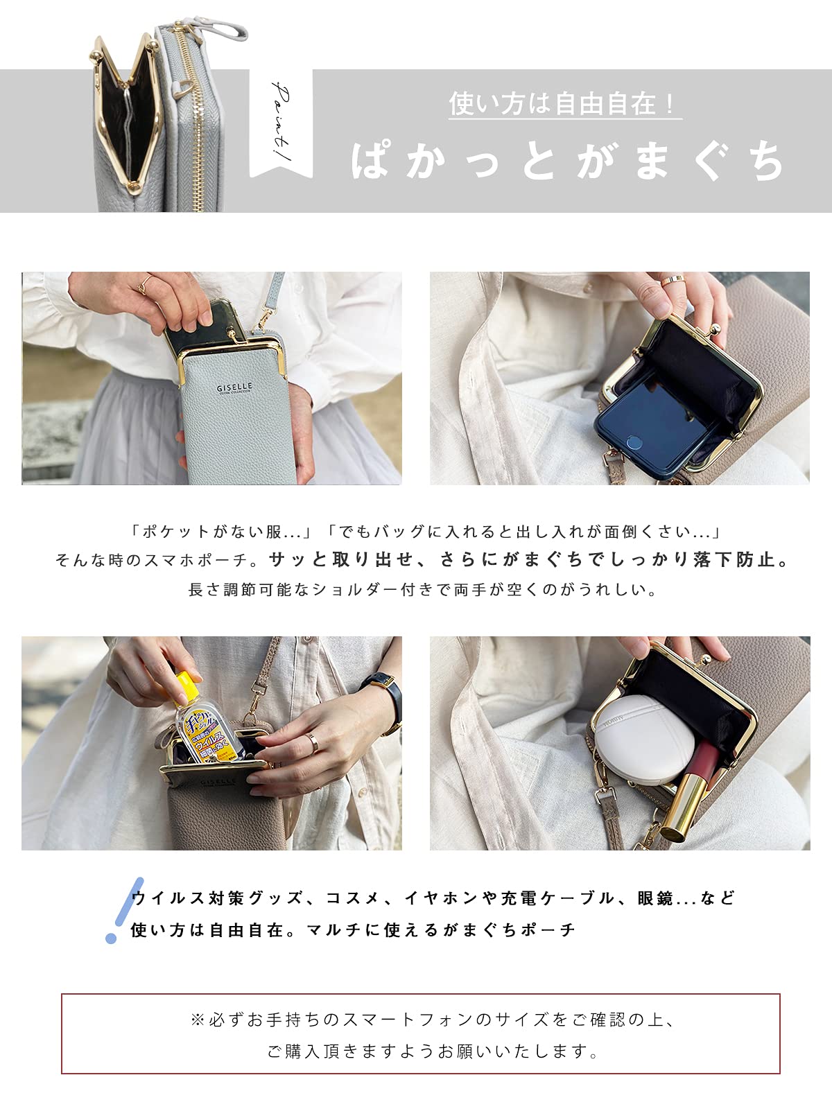 [ジゼル] スマホショルダー スマホポーチ レディース ショルダーバッグ お財布ポシェット お財布ショルダー がまぐち ポーチ 斜め掛け 長財布 軽量 カードケース 縦型