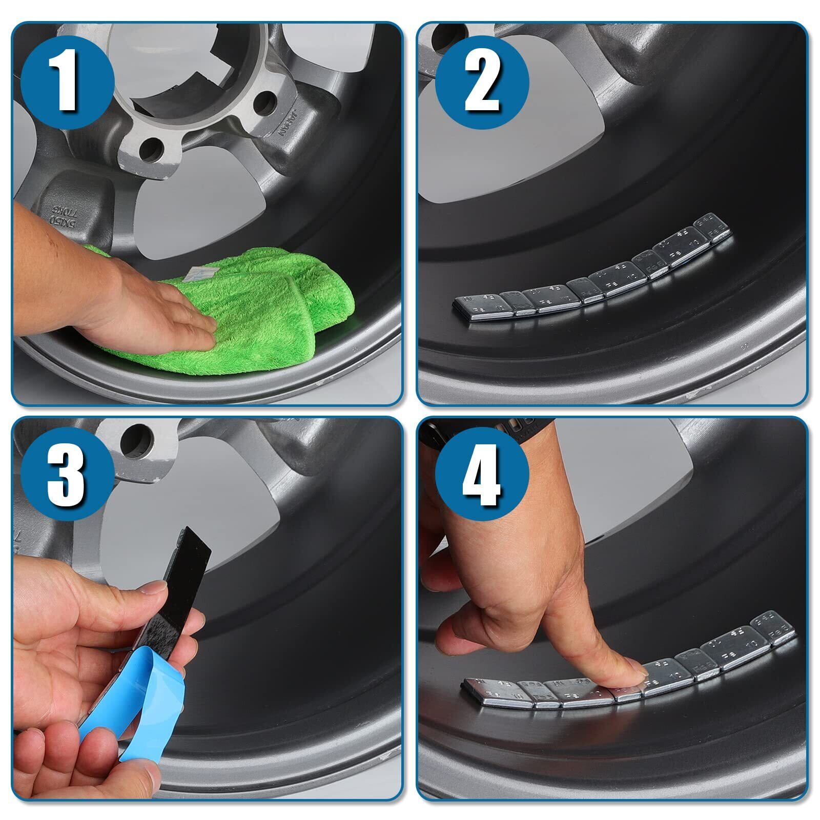 ※確実な貼り付けのために、必ずブレーキクリーナー等で取り付け面の汚れ落とし・脱脂を行ってください。また鉄製ウェイトのため変形せず、曲面には取り付けられない場合もありますのでご了承下さい。