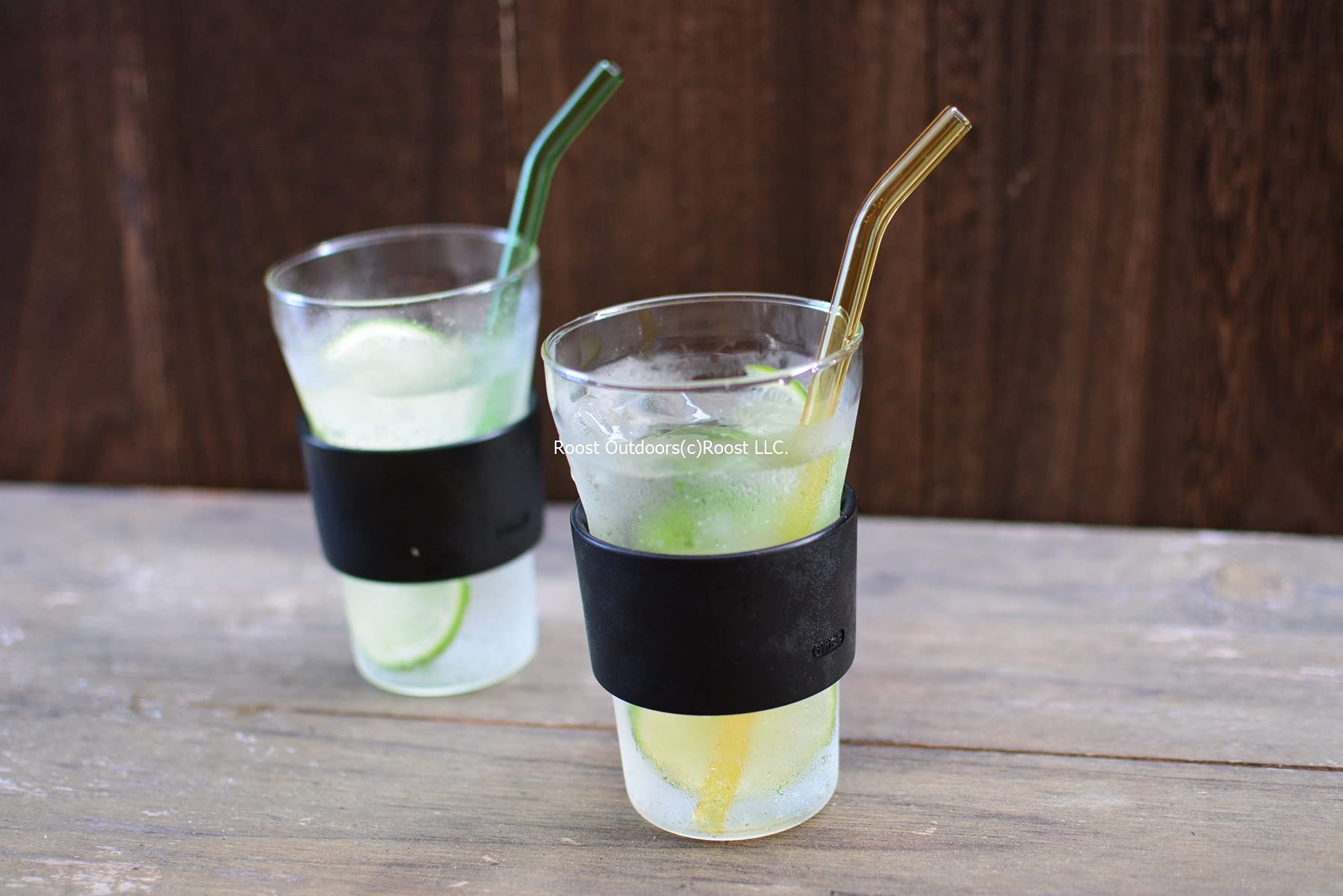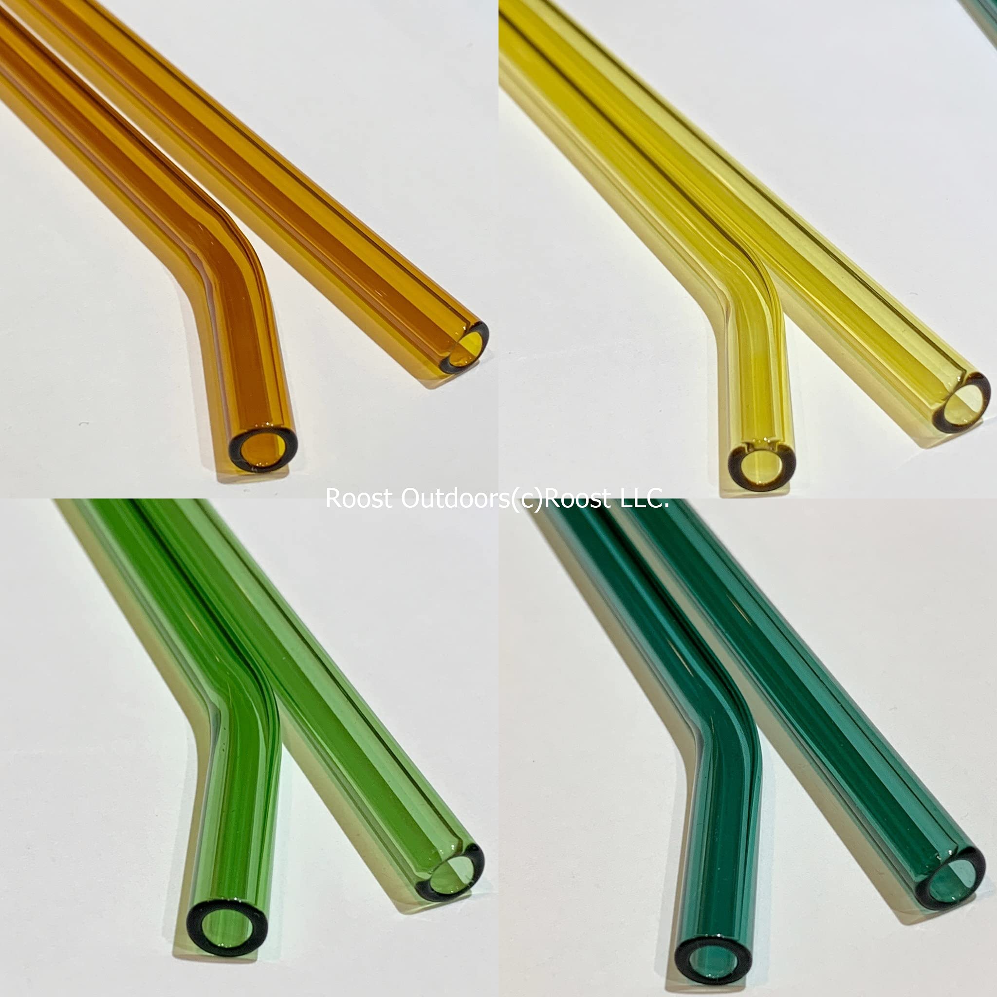 Roost Outdoors 【食品衛生法検査済】 ガラスストロー カラー 4色 8本セット ベントストロー 4本 ストレートストロー 4本 洗浄ブラシ 2本