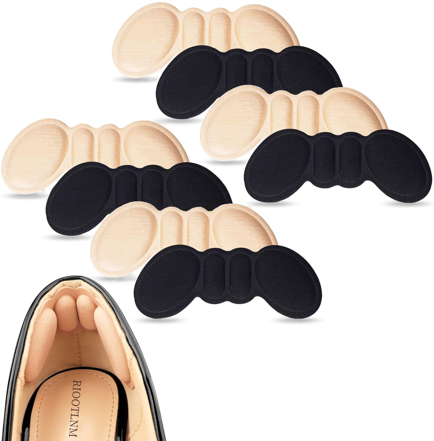 【セット内容】このセットには肌色、黒各2ペア、日常の使用と交換を満たすことができます。商品サイズ:約9.7×4cm、厚み6mm。蝶形のデザインは両側に突き出た高弾力の記憶スポンジはかかとを優しく包み込みます。