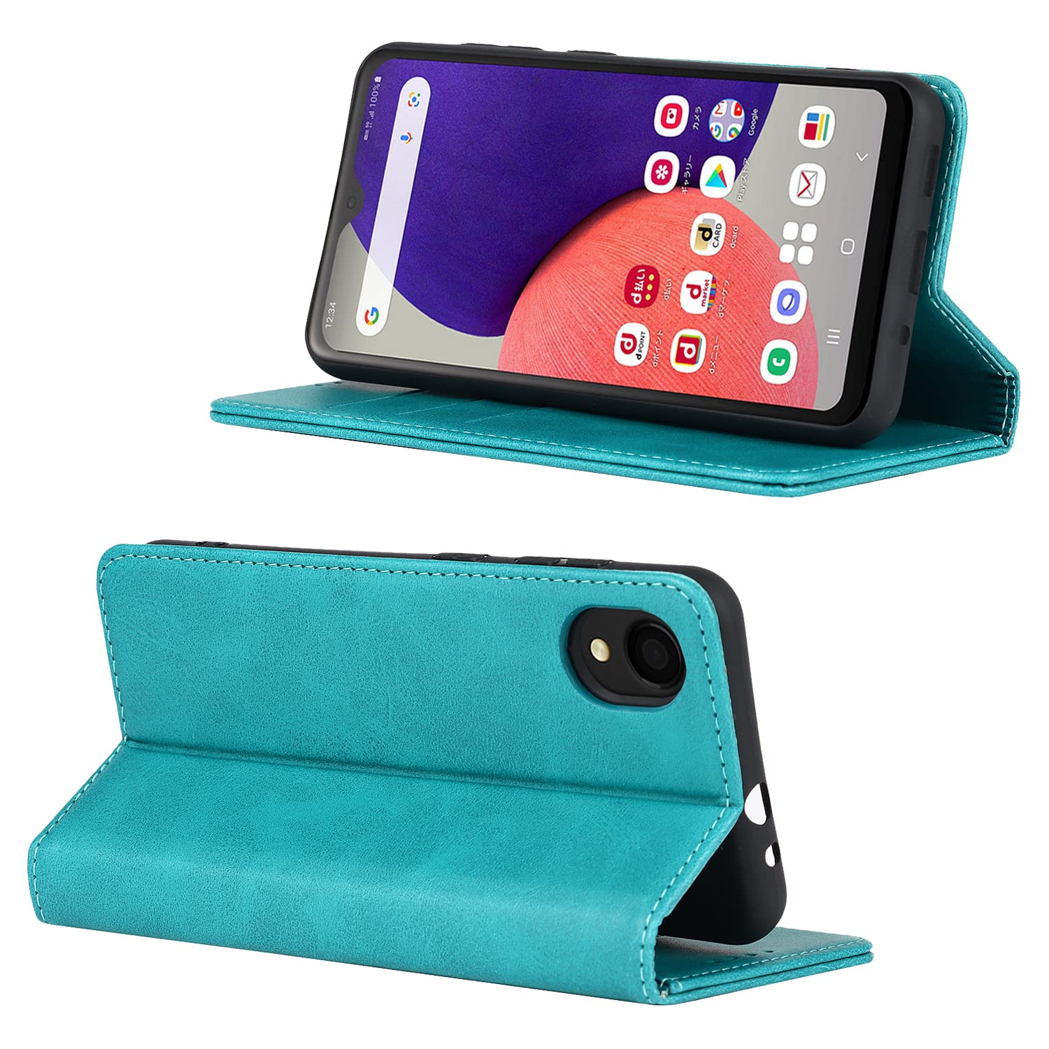 Galaxy A22 5G ケース 手帳型 日本版 SC-56B ケース docomo 対応 サムスン ギャラクシー A22 5G カバー A22 ケース galaxy SC56B ケース A225G スマホケース A22ケース 手帳型 CASE 合成皮革 内蔵マグネット ケース 手帳型 スマホケース 携帯カバー カード入れ スタンド機能 落ち着いた色 レトロ ターコイズ