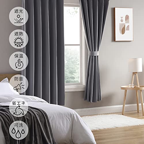 【新春セール】Hansleep カーテン 1級遮光 幅100cm×丈230cm 2枚組 グレー 断熱 防寒 防音 省エネ 厚手 無地 おしゃれ 洗える 寝室 リビング用 (グレー 幅100cm×丈230cm) | asaRulu0511