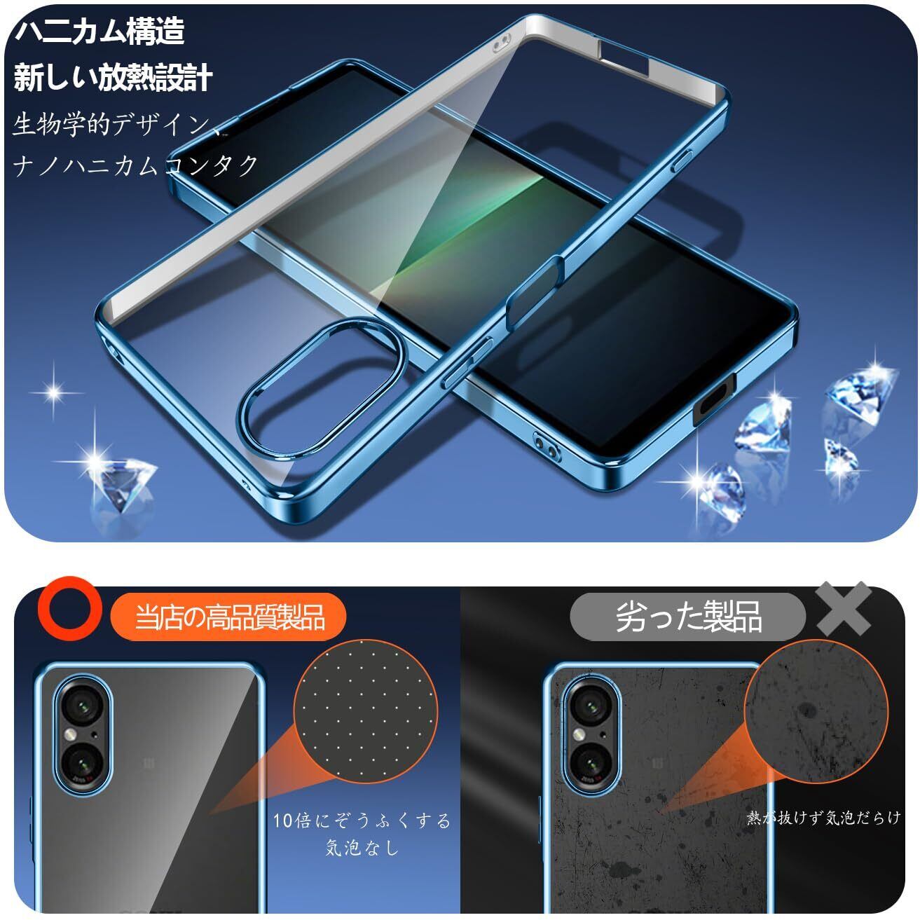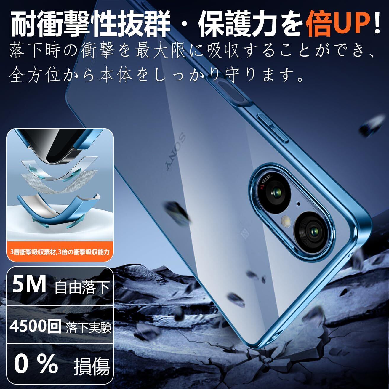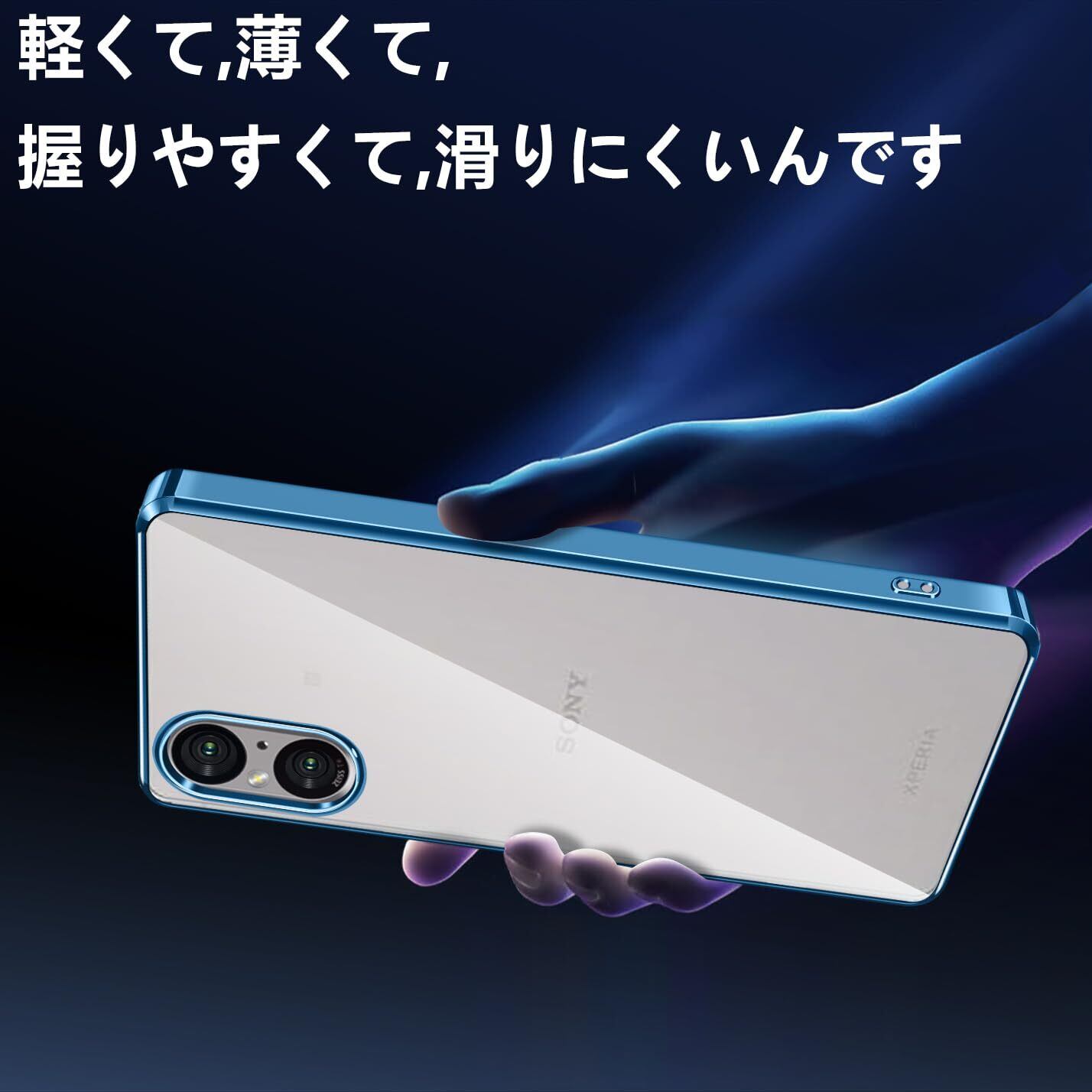 【2022最新】SONY Xperia 5 V ケース クリア スマホケース Xperia5V SO-53D SOG12 カバー 透明 薄型 ソフト TPU 耐衝撃 メッキ加工 ストラップホール付き 軽量(ブルー) | asaRulu0511