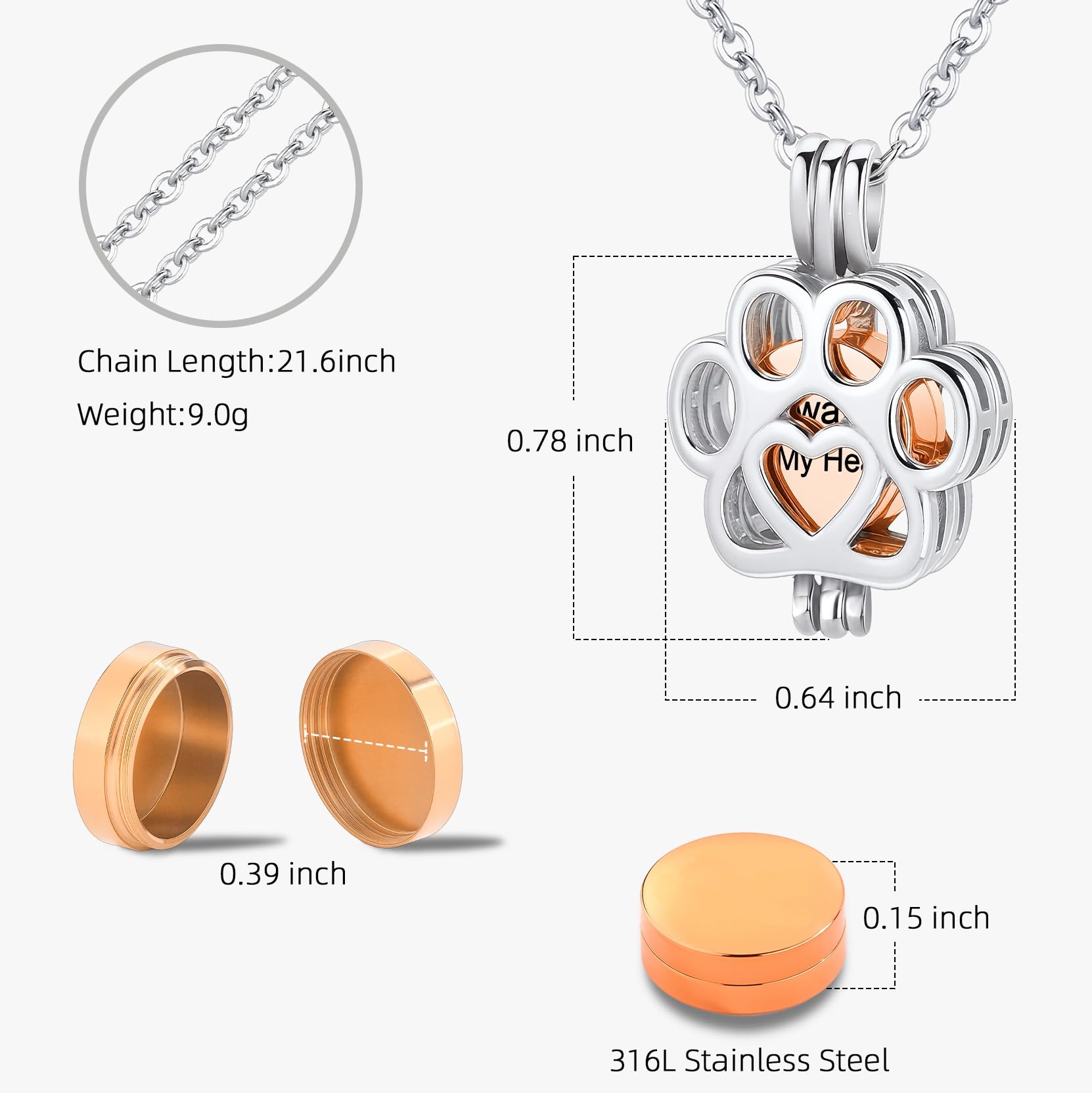 【火葬ジュエリー材質】高品質のステンレス鋼で作られ、特別なペットの骨壷ネックレスは中空肉球のデザインで、あなたの愛する人がいつもあなたと一緒にいることを思い出させるように、少量の灰を保持するように設計されたサークル小瓶付き、耐久性、防水性、エレガントでファッショナブルな、あなたをより魅力的にします