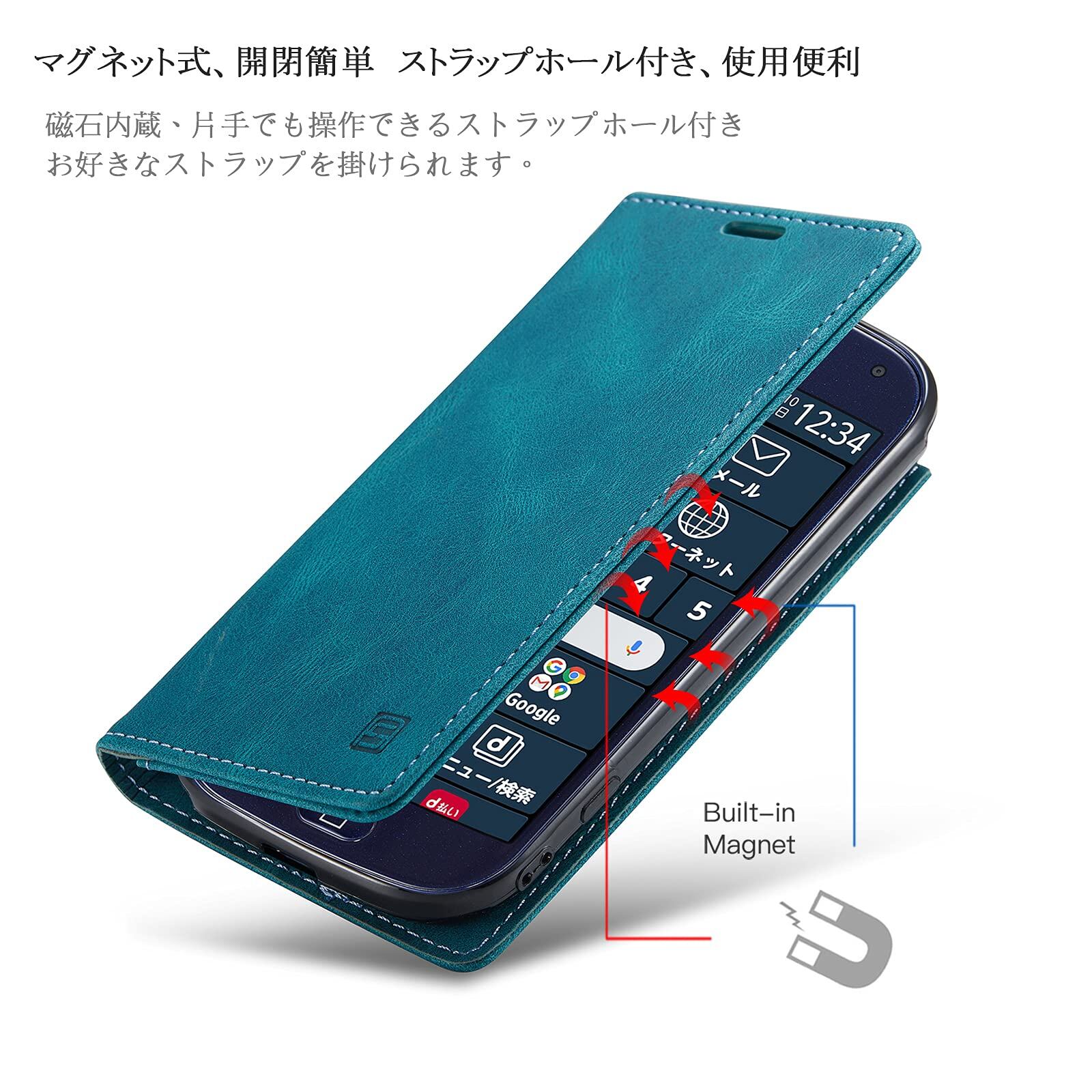 らくらくスマートフォン me F-01L ケース手帳型 docomo らくらくスマートフォン F-42A 手帳型 ケース F01L F42A 通用 カバー fujitsu らくらくほん 手帳型 カバー 携帯ケース case RFID 磁気防止 スキミング防止 スマホケース 携帯カバー 肌触り良い 肌感レザー 財布型 カード収納 マグネット式 スタンド機能 ストラップホール付き 薄型 360度保護 耐衝撃 かっこいい 美しい 高質感 男女兼用 (らくらくスマートフォン me F-01L F42A 対応) ターコイズ グーリンっぽい
