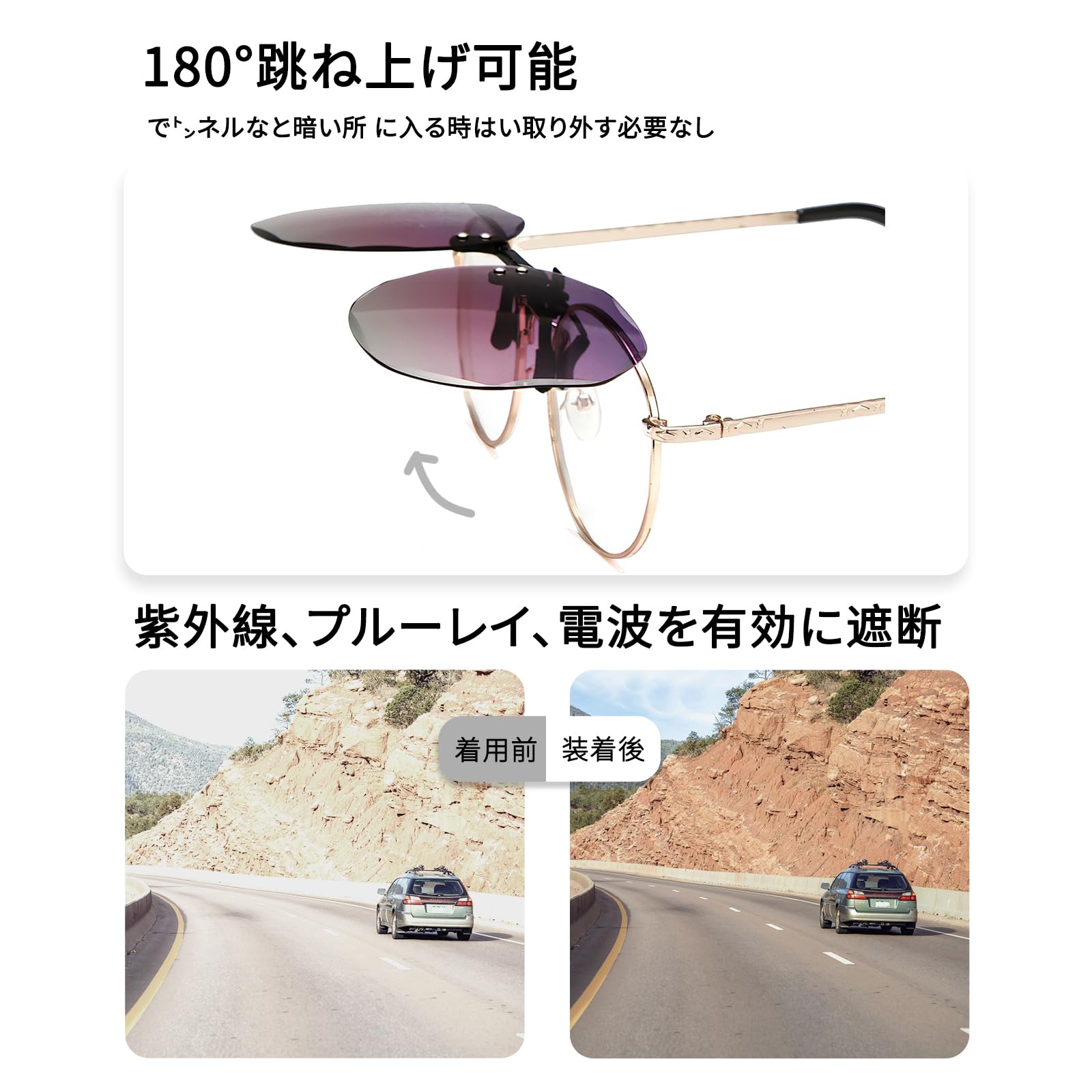 【近眼者の必携品】本体8gと軽量で、クリップは眼鏡の間で挟むことができて、すばやくあなたの近視の眼鏡の上で貼り付けて、めくって、使用して便利です。それ以来眩しさを心配する必要はありません通常のサングラスよりも簡単に切り替えられます。