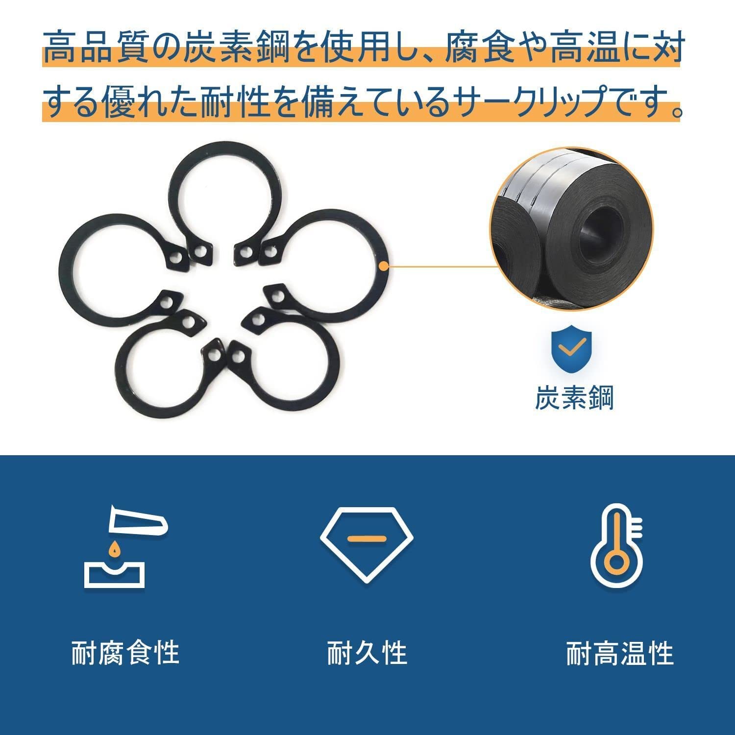この軸用スナップリングは高品質の炭素鋼で作られており、腐食や高温に対する優れた耐性を備えて、長期間使用することができます。