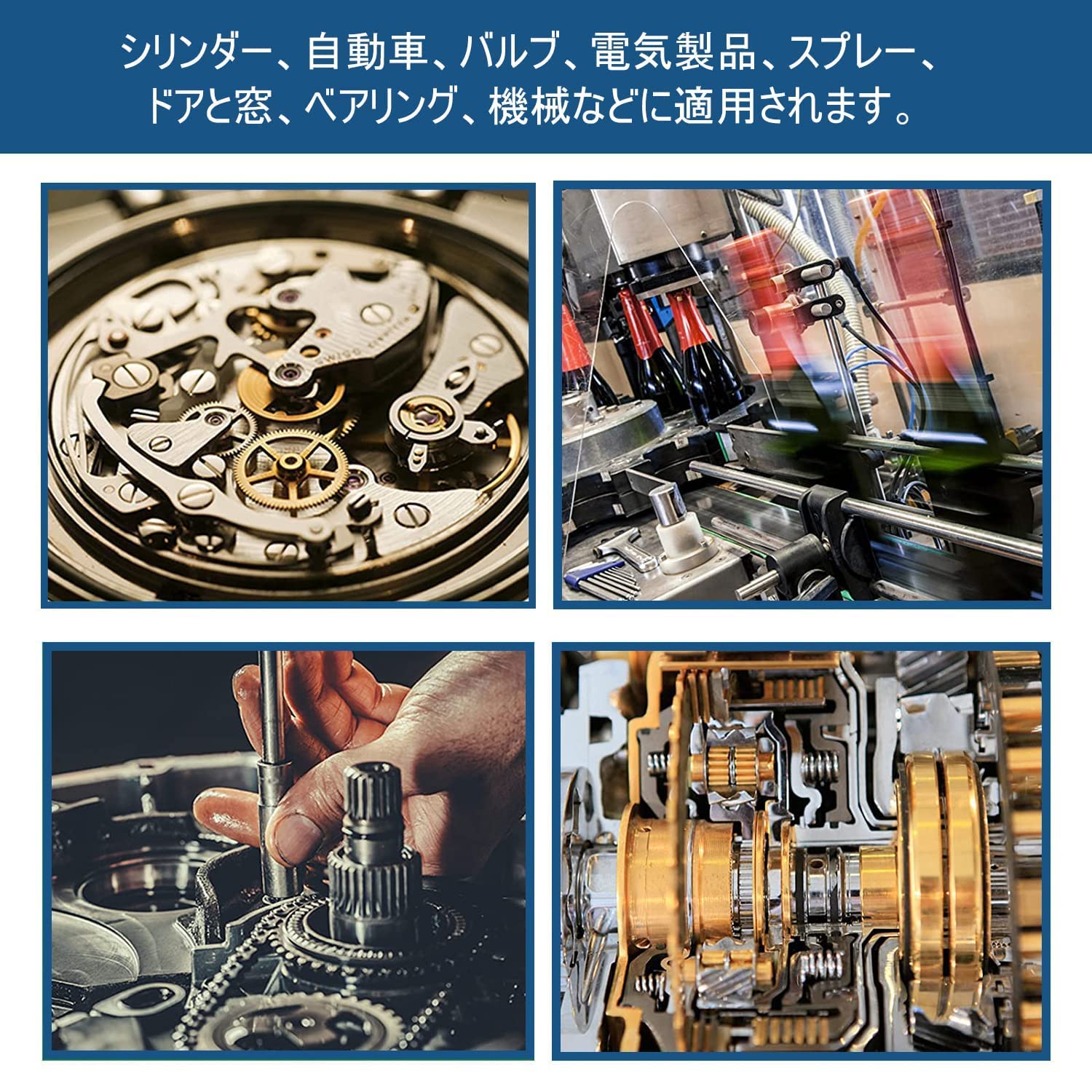 シリンダー、自動車、バルブ、電気製品、スプレー、ドアと窓、ベアリング、機械などに適用されます。屋内と屋外での使用に適します。取り付けも簡単です。