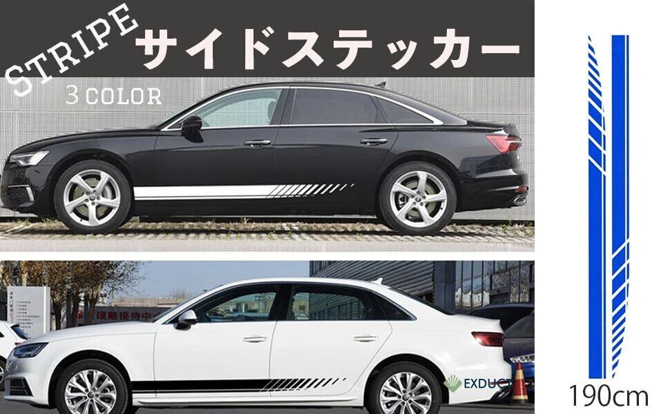 【新着商品】EXDUCT ステッカー デカール ストライプ サイドステッカー スポーティー 車 サイド 汎用 カスタム 190cm ブルー