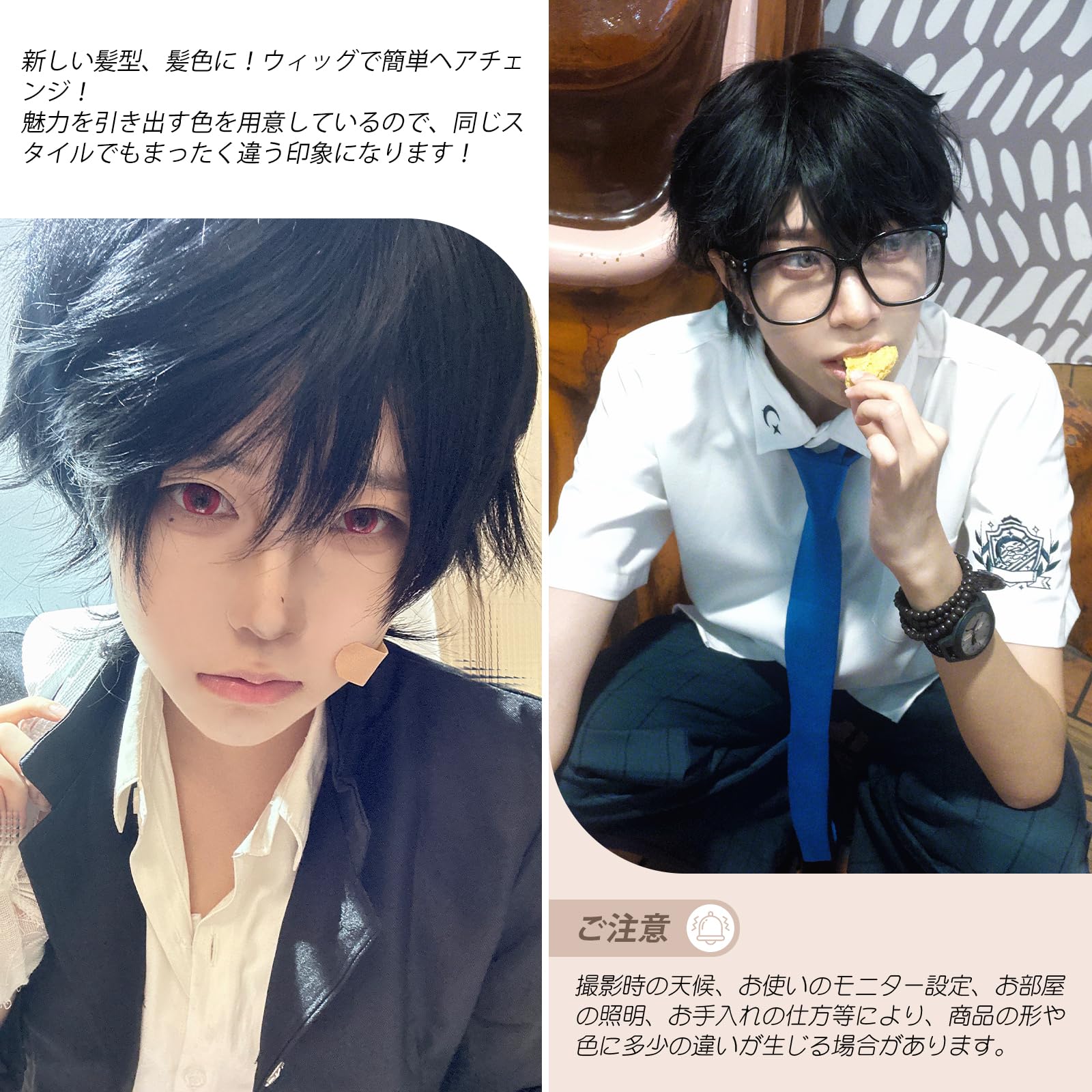 FESHFEN ウィッグ かつら メンズ ウルフ 黒髪 男性 フルウィッグ ウルフカット 男装 黒 ショート ハンサム 普段使い ゆるふわ ファッション イケメン 原宿 自然 男女兼用 耐熱 人気 ファッション ふわふわ 短髪 ネット/櫛付き ブラック