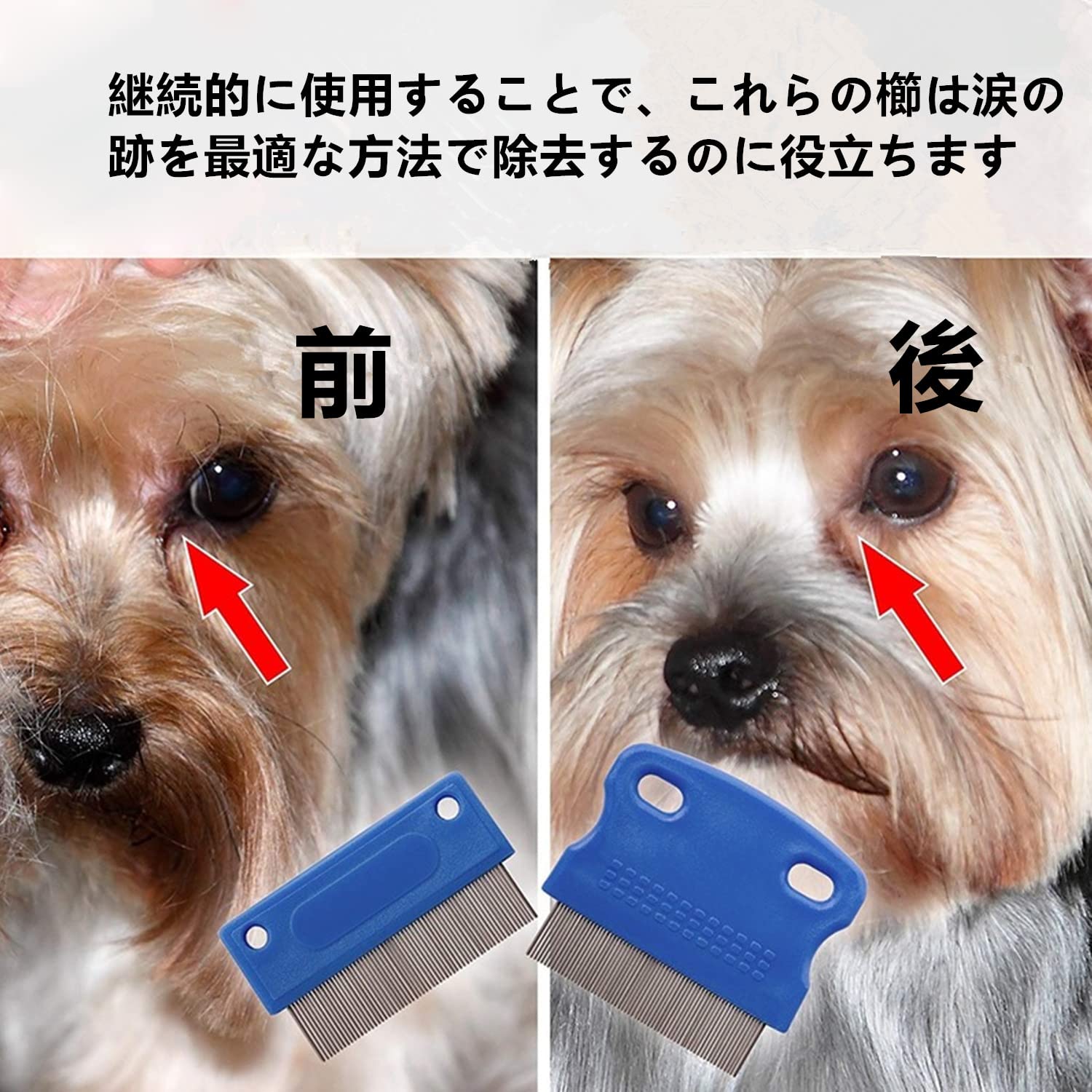LIKENNY ペット コーム 犬の櫛 ノミ取り櫛 犬猫 美容ブラシ 抜け毛取りクリーナー 犬用涙やけ除去用くし 肌にやさしい 痒み止め 長毛短毛兼用(2本セット)