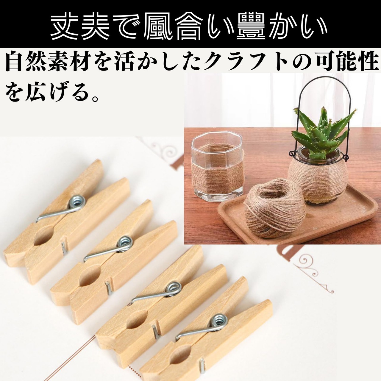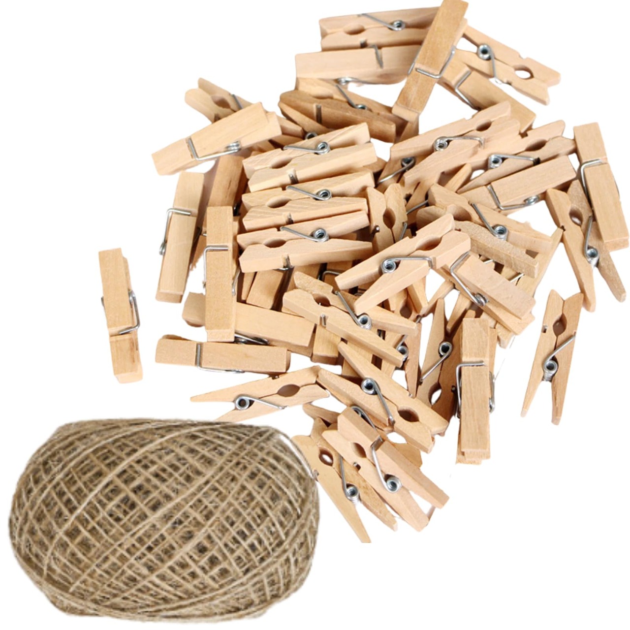 Quikaboo ミニクロスピン クロスピン 木製クリップ 麻紐 木製ピンチ 手芸 写真 約100m 100pcs