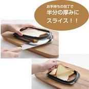 ※こちらの製品は「5枚切り」「6枚切り」にスライスしてある食パンを半分の厚みにスライスする道具です。それ以外の食パンは不安定になりますのでご使用にならないでください。