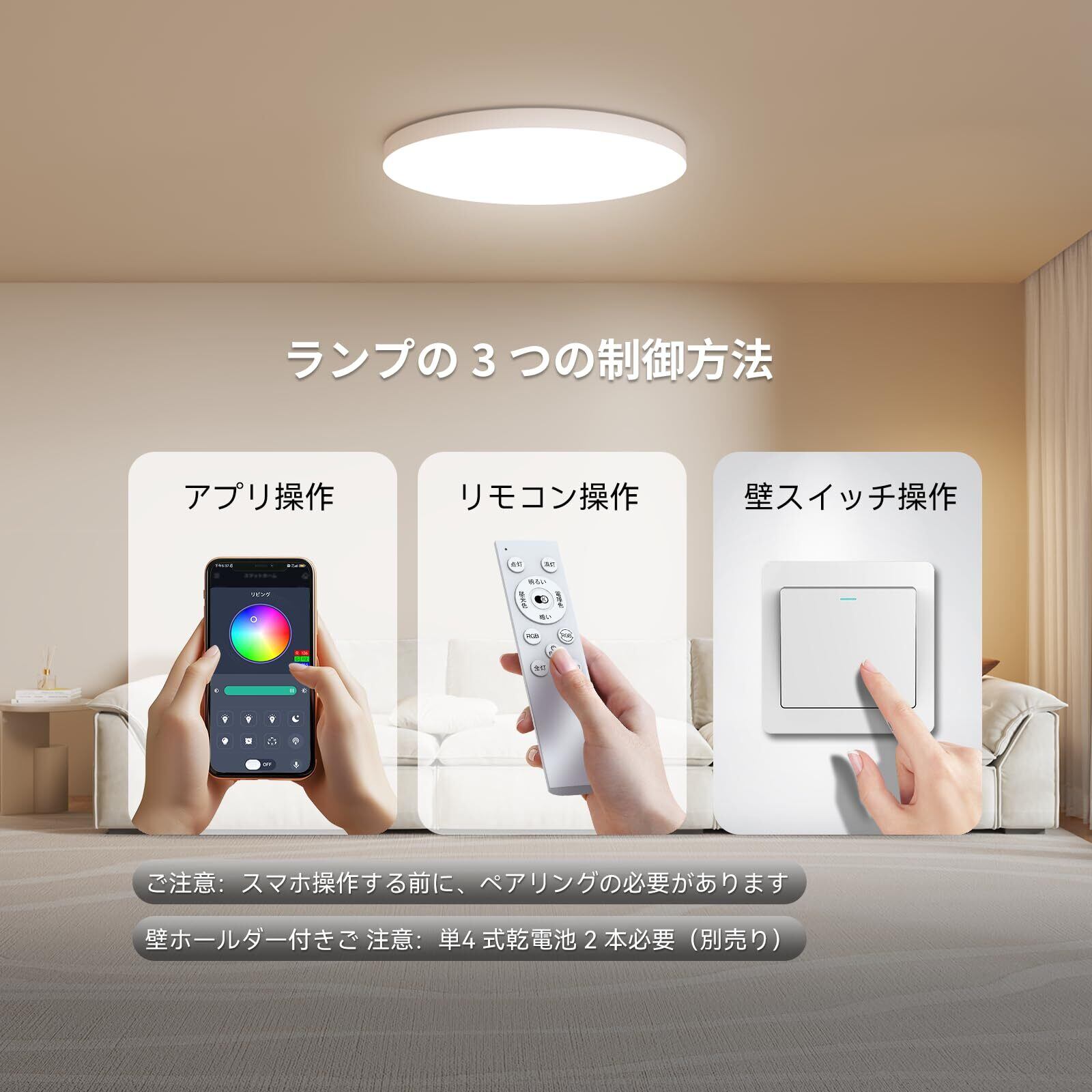 【リモコン & スマホ操作】①リモコンのペアリング:壁スイッチをオフ→オン後2秒以内に「点灯」ボタンを3~5秒長押し。点滅したら完了。※ブレーカーでもOK。②2.4Gリモコン:最大20m範囲で操作可能,操作が簡単です。ホールダー付きで紛失防止,電池(別売)要。③スマホ操作:LampSmart Proアプリでも簡単操作,省エネでスマート、生活の質を向上させます,リモコン無くても安心!