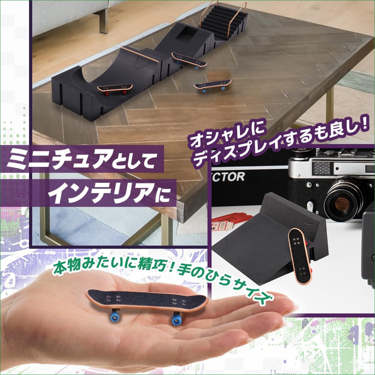 指先のスキルを高めるトレーニングツールとして最適なフィンガースケートボード このフィンガースケートボードセットは、単なるおもちゃを超えたトレーニングツールとしても大変優れています。指のコーディネーションや柔軟性を鍛えるだけでなく、フレットボードのテクニックや集中力の向上にも役立ちます。手軽に始められ、スケートボードのトリックを指先で再現することで、楽しみながら技術を高められます。初めて指スケに挑戦する方から、プロを目指す方まで、どんなレベルのプレイヤーにも満足していただけるアイテムです。