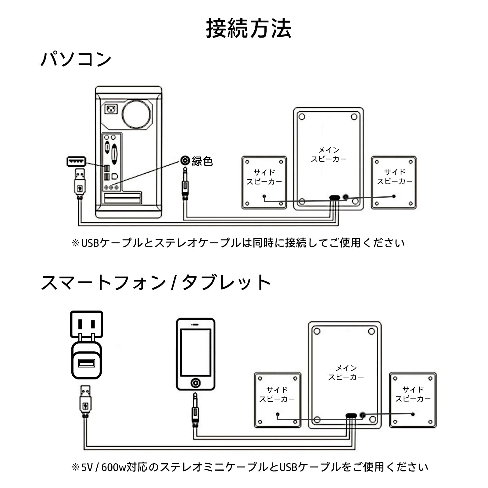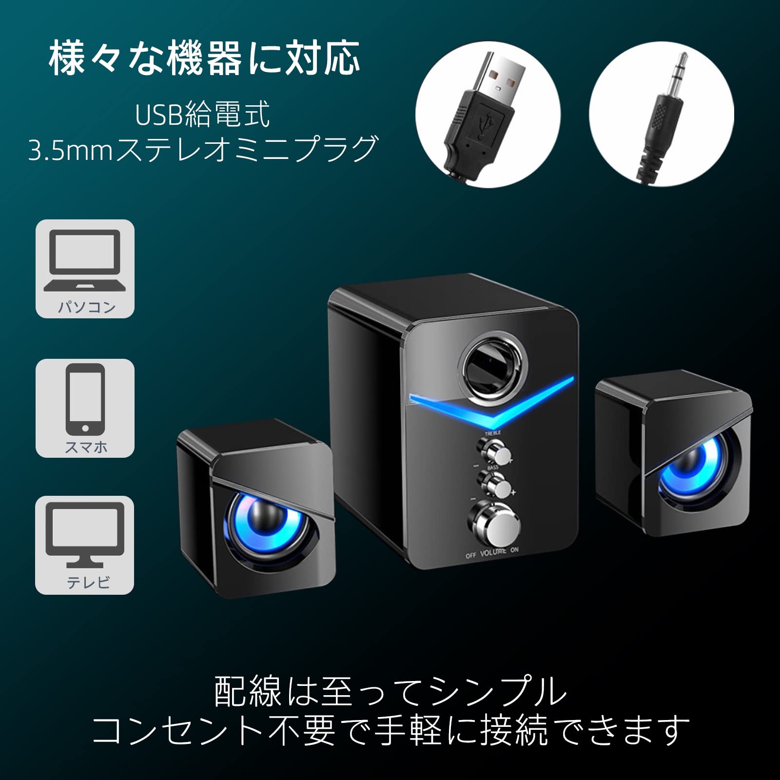 【様々な用途】音源出力は3.5mmステレオミニジャック接続で音声端子に繋ぐだけで設置は完了です。パソコンやテレビだけではなくゲーム機やスマホなど幅広く対応します。