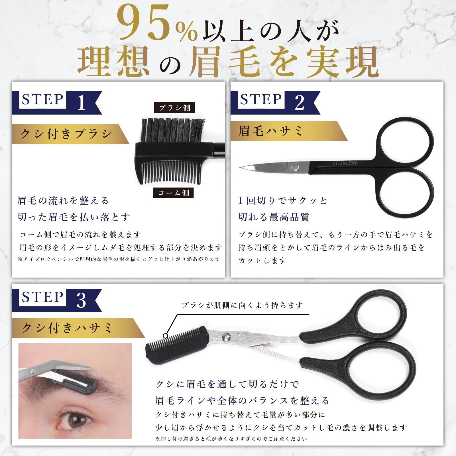 【商品のこだわり】数多くのメーカーからメンズ眉セットが販売されていますが、i_dearの眉毛カットセットは「初心者でも扱いやすい」とオールインワンという点にこだわりました。美容商品を取り扱っている50社以上の工場とやりとりをして細かいこだわりに対応していただけた1社で製造しております。初心者でも眉毛を整えやすいコーム付きハサミを採用。