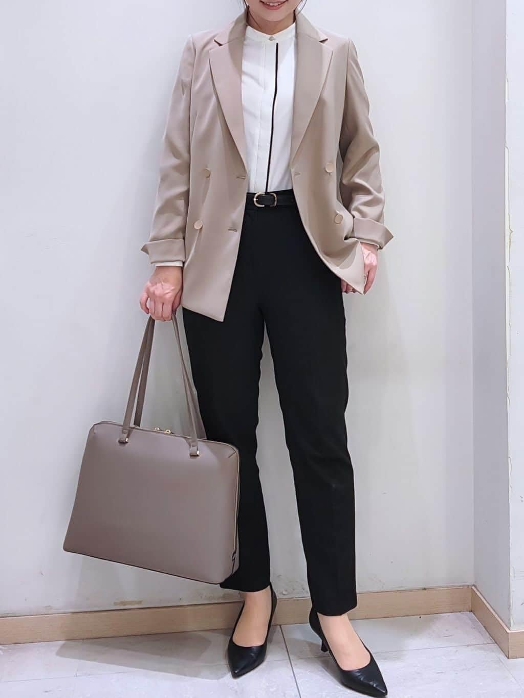 1.センタープリーツと高めの膝位置が、脚を真っすぐに見せてくれます。