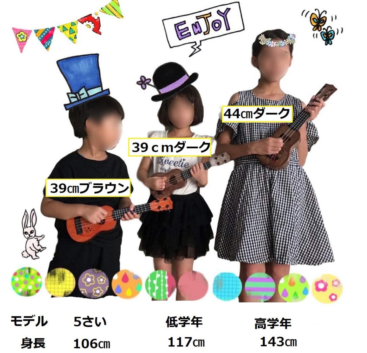 SWANBELLE おもちゃ ウクレレ 子供用 ミニギター 撮影小物 エッグシェイカー 4弦 (ブラウン 39㎝)
