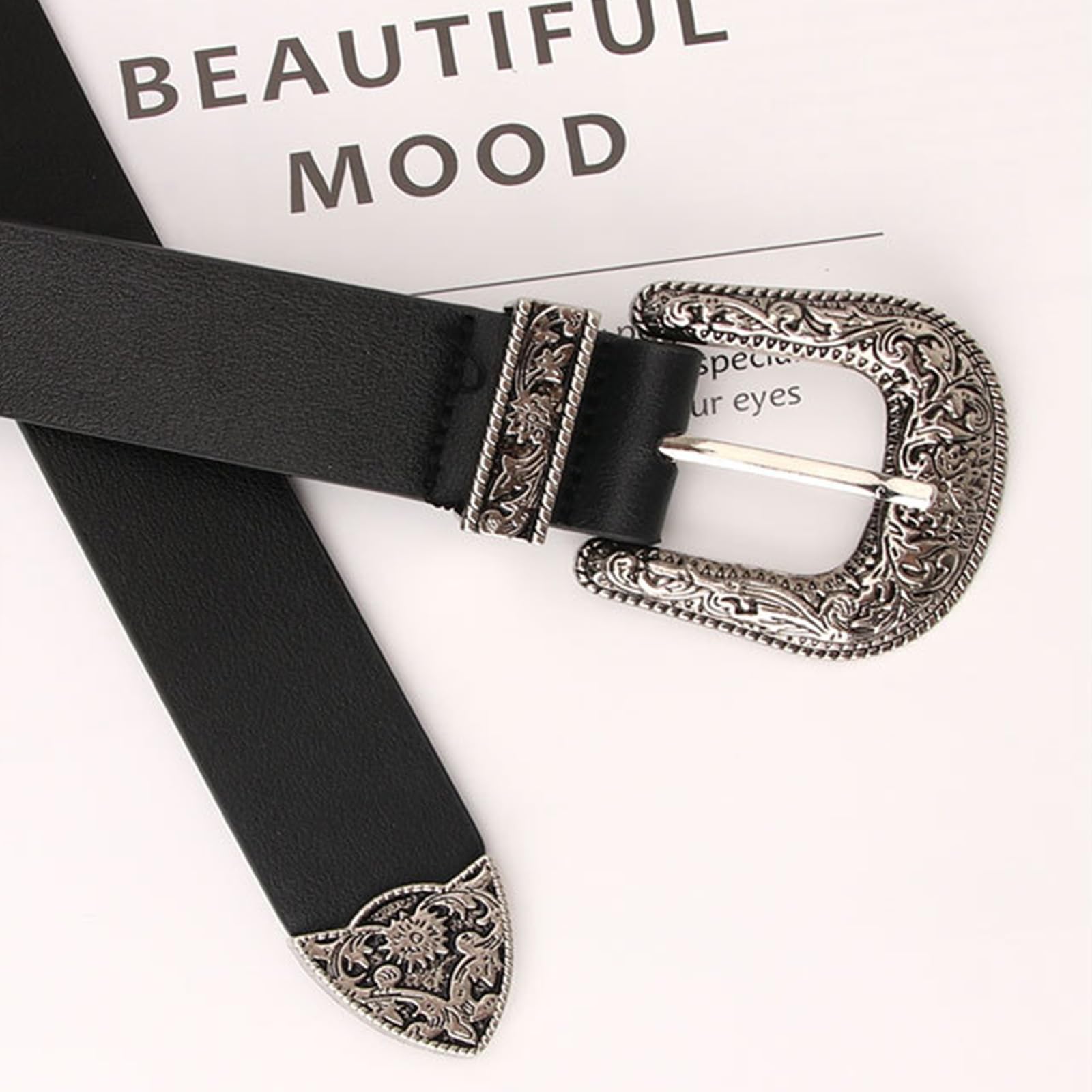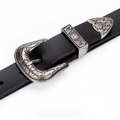 ブラックのPUレザーがシックな雰囲気を醸し出すウエスタンベルトです。
