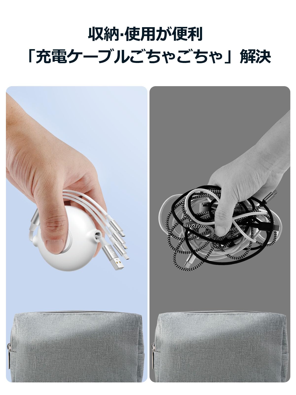 3in1 充電ケーブル 巻き取り式 Aioneus 2本セット マルチ充電ケーブル iPhone 充電ケーブル リール USB Type Cケーブル マイクロUSBコード iPhone 14 13 Pro Max 12 XR Galaxy S22+ S21 S20 A53 Xperia Pixel Switch