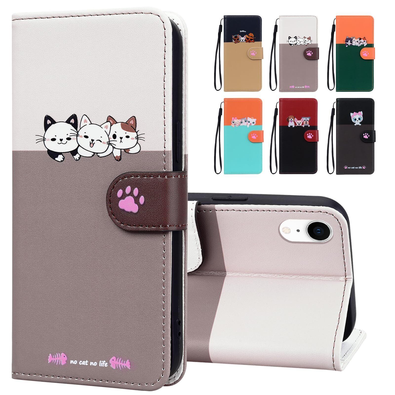 【在庫処分】【iPhone XR ケース 手帳型】iphonexrスマホケース iphone xr ケース 財布型 iPhone XR 猫柄スマホケース iPhone XR レザースマホケース 快適な手触り XR ポケットケース かわいい 便利 衝撃吸収ソフトクッション ファッショナブルな猫の爪マグネットクラスプ 調整可能なレベリングスタンド[グレー+ホワイト]