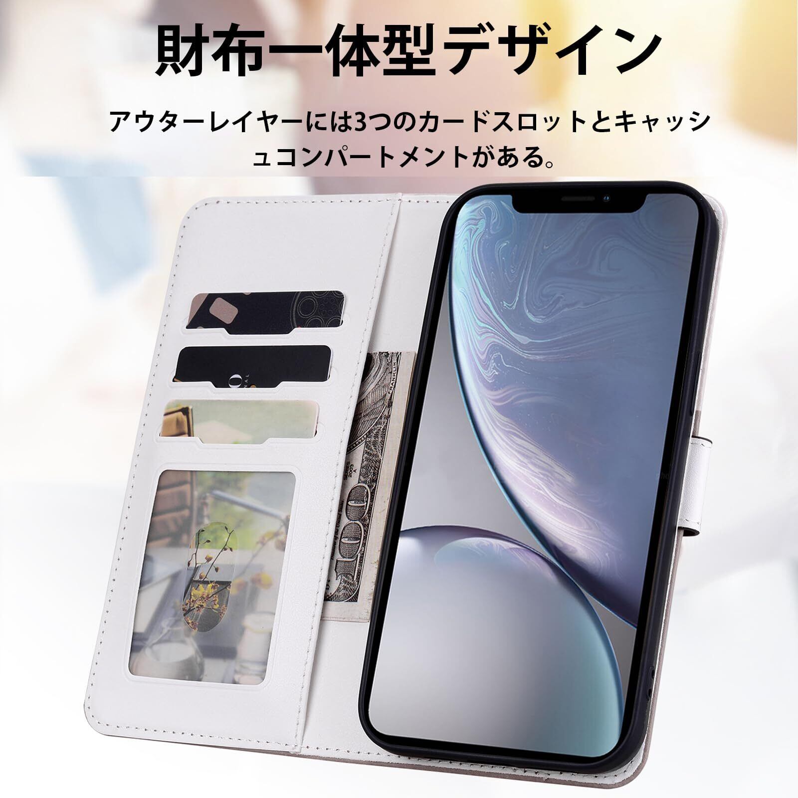 【iPhone XR ケース 手帳型】iphonexrスマホケース iphone xr ケース 財布型 iPhone XR 猫柄スマホケース iPhone XR レザースマホケース 快適な手触り XR ポケットケース かわいい 便利 衝撃吸収ソフトクッション ファッショナブルな猫の爪マグネットクラスプ 調整可能なレベリングスタンド[グレー+ホワイト]