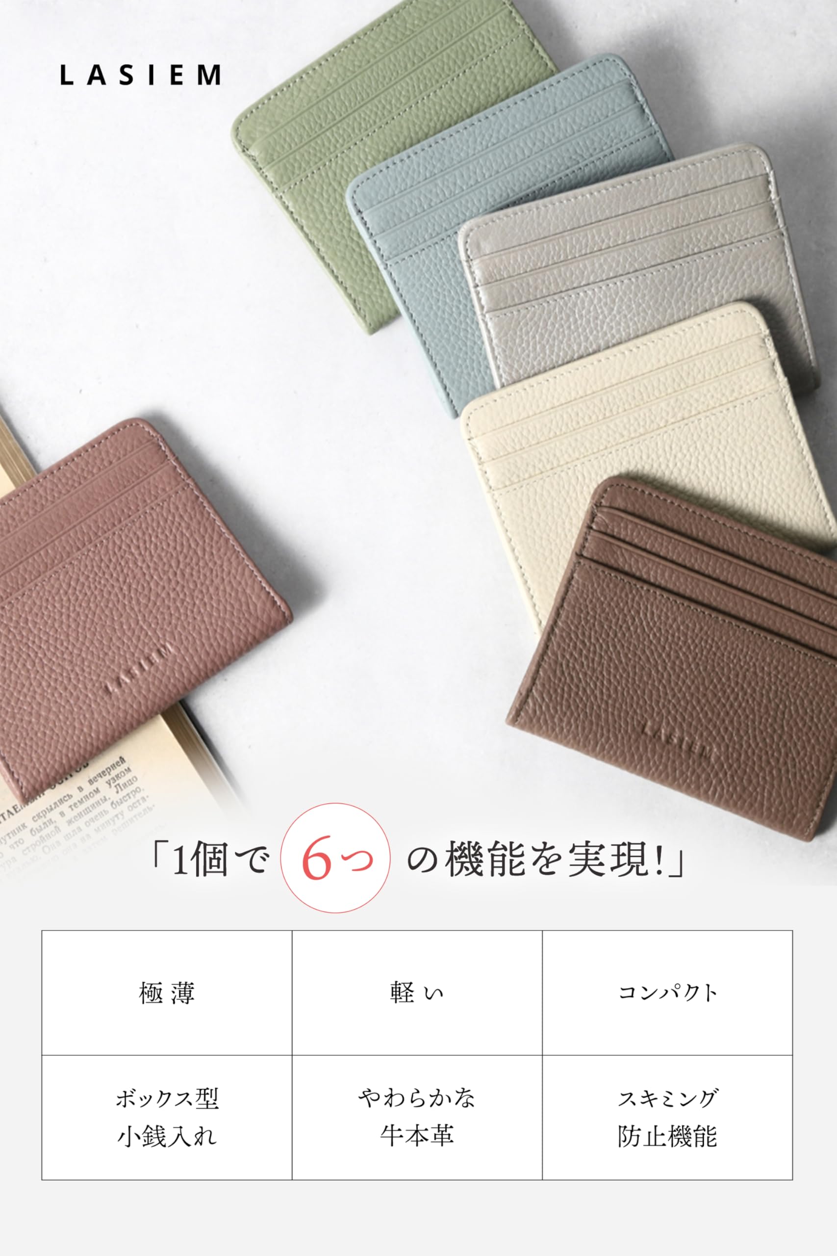 LASIEM(ラシエム) ミニ財布 レディース カードケース 本革 薄型 「小銭入れ付き」 コンパクト 軽量 薄い 軽い 小さい財布 スキミング防止 極薄 ミニウォレット フラグメントケース(トープ)