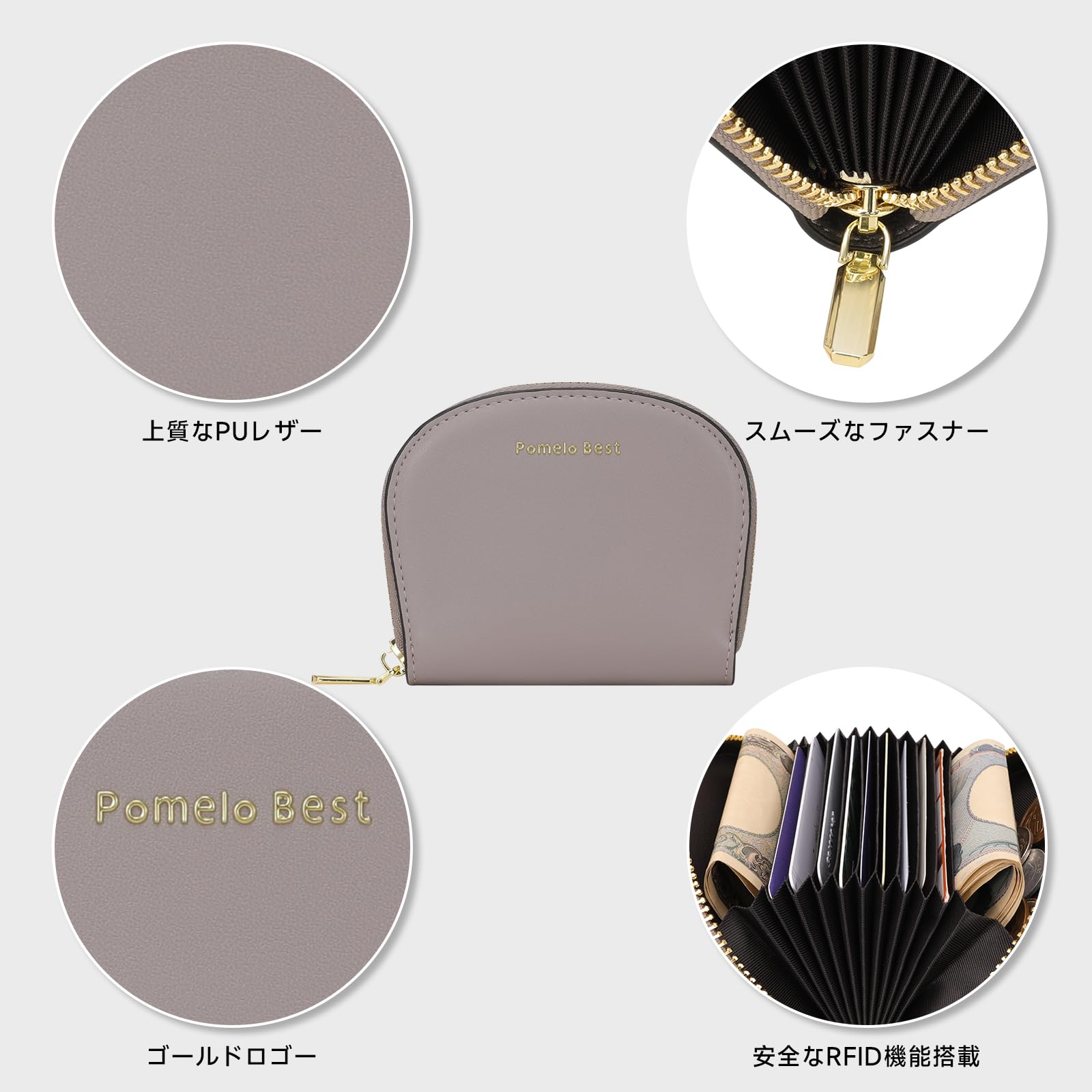 [Pomelo Best] クレジットカードケース じゃばら 磁気 スキミング防止 カード入れ レディース 薄型 軽量 ポメロ ベスト グレー