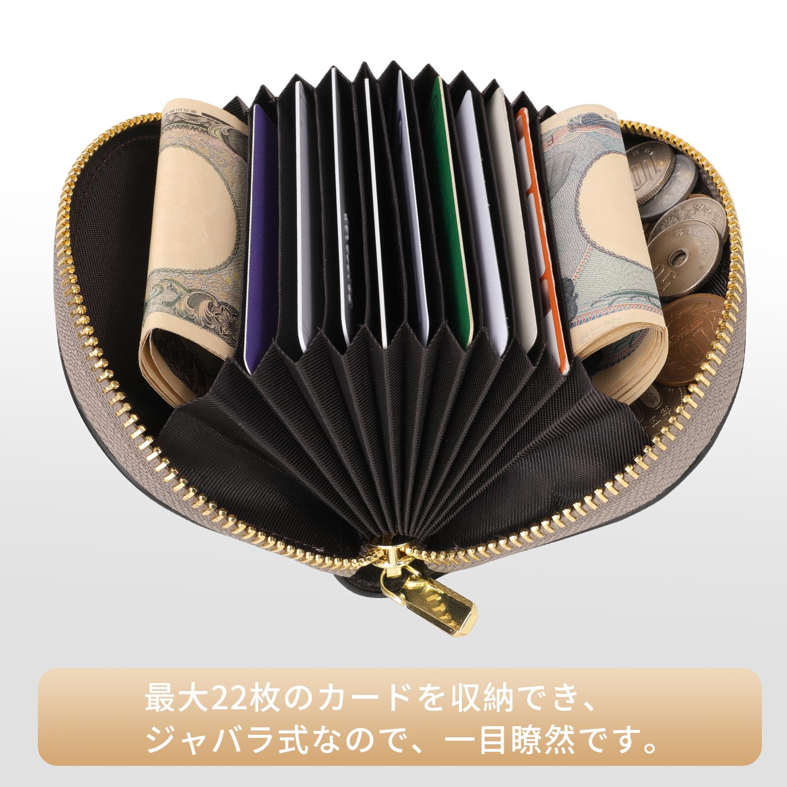 【手のひらサイズ&使いやすいじゃばら式】わずか80gの小さいクレジットカード入れで持ち運び便利です。最大180°まで広く開き、出し入れやすく、どこに何のカードがあるのか一目瞭然です。