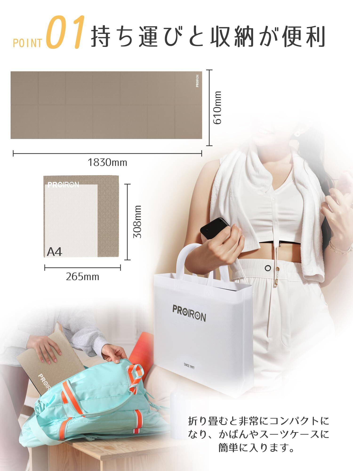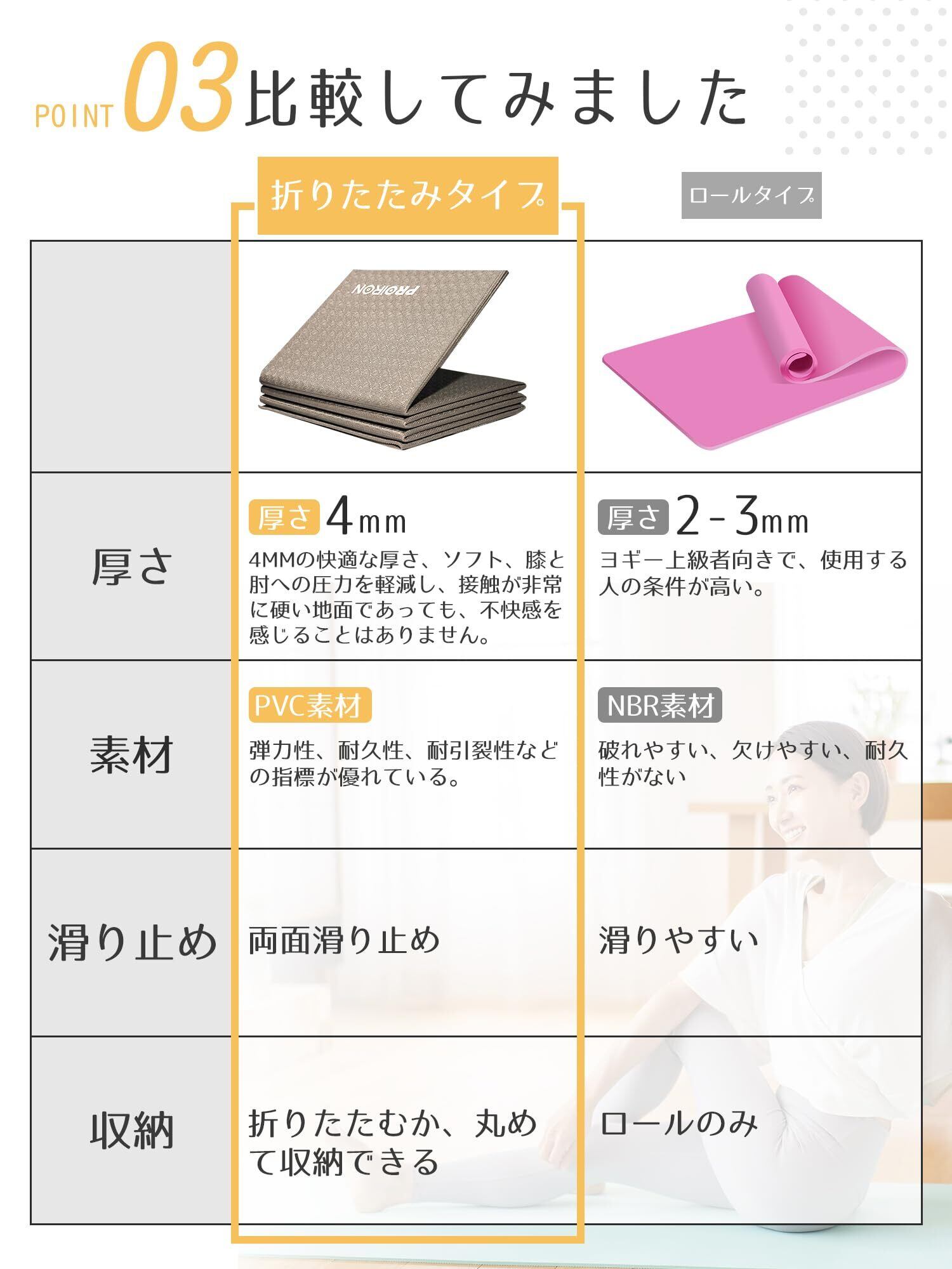 【在庫セール】PROIRON ヨガマット 折りたたみ ストレッチマット 折畳み 折り畳みマット コンパクト トラベルヨガマット トレーニングマット 折りたたみ 軽量 持ち運び 183×61cm 5色 | asaRulu0511