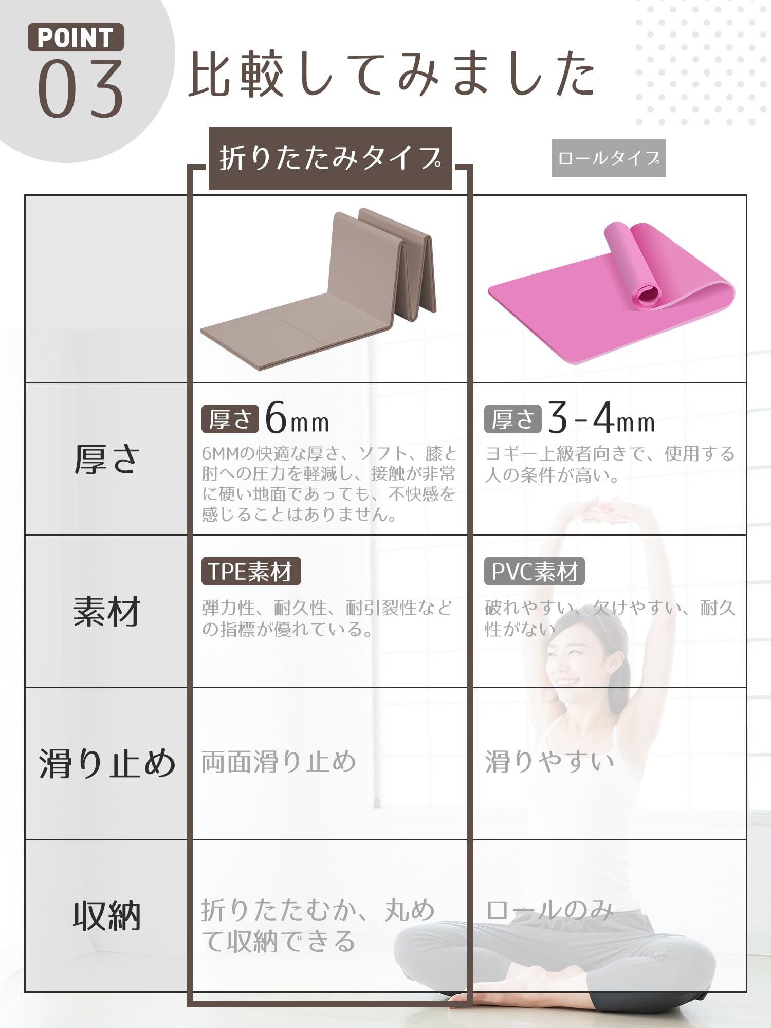 【折りたたみヨガマット tpe 6mm】6mm、より快適で滑りにくい。