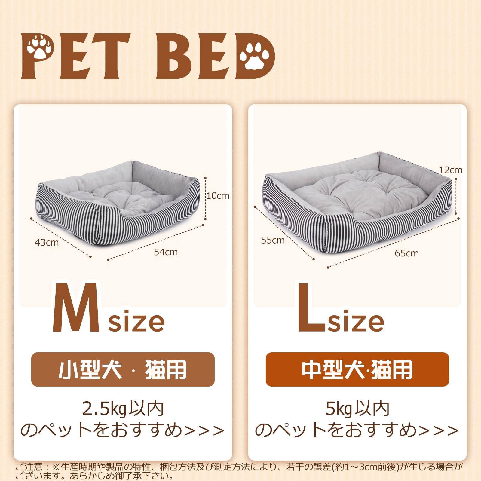 FYB ペットベッド 犬ベッド 猫ベッド クッション ペットソファー マット 滑り止め 通年 丸洗い 小型犬 中型犬 (M 縞模様)
