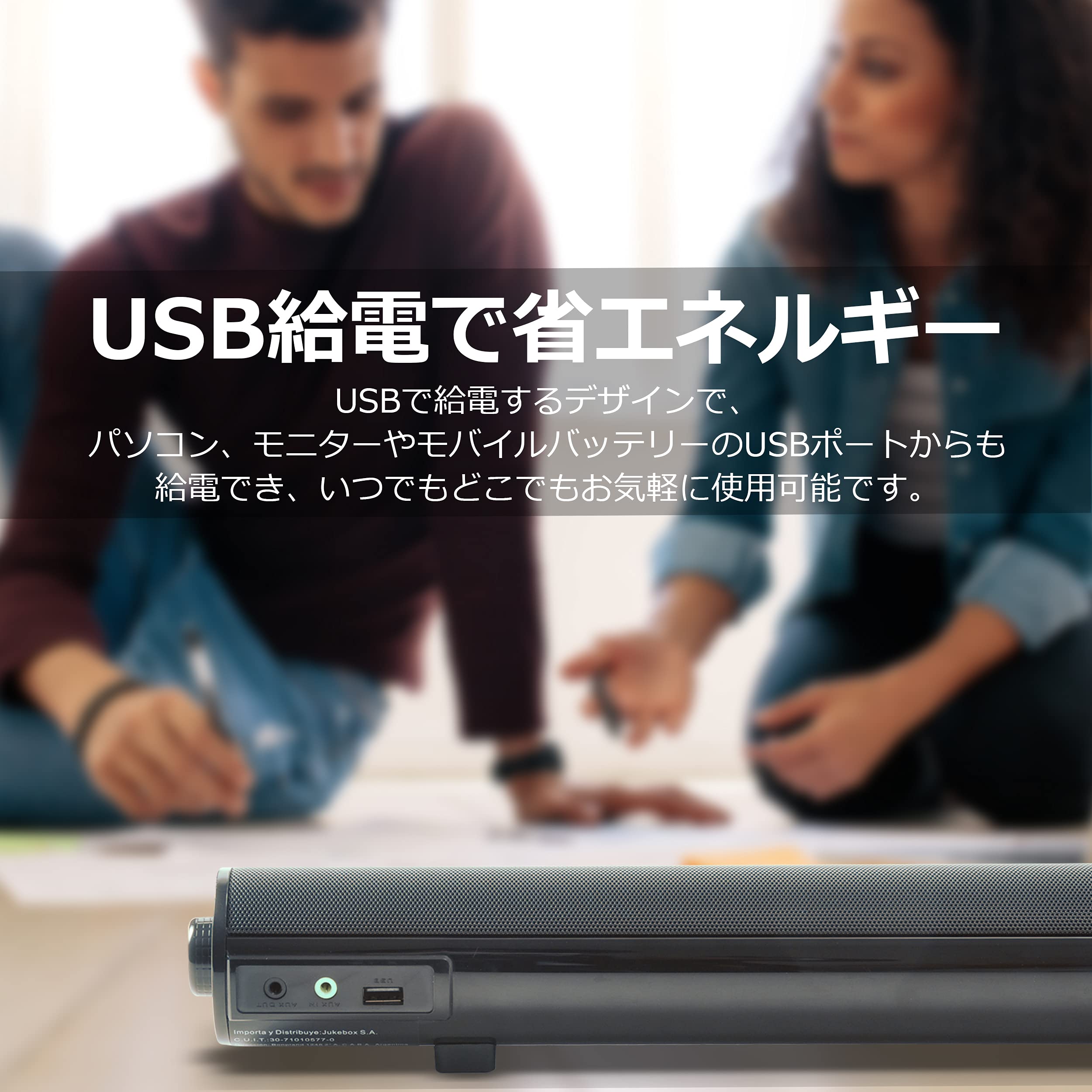 【スピーカー】■型式:2chスピーカーバスレフ型 ■再生周波数:80Hz~20,000Hz ■最大出力:3W×4 ■インピーダンス:4Ω 【その他】■電源:USB-5V、USB給電 ■使用温度範囲:5~35℃ ■対応フォーマット:mp3、wav ■外形寸法:約 W50cm×D5.8cm×H5.8cm ■質量:約770g ■付属品:リモコン、USB給電ケーブル、オーディオケーブル Ф3.5mm
