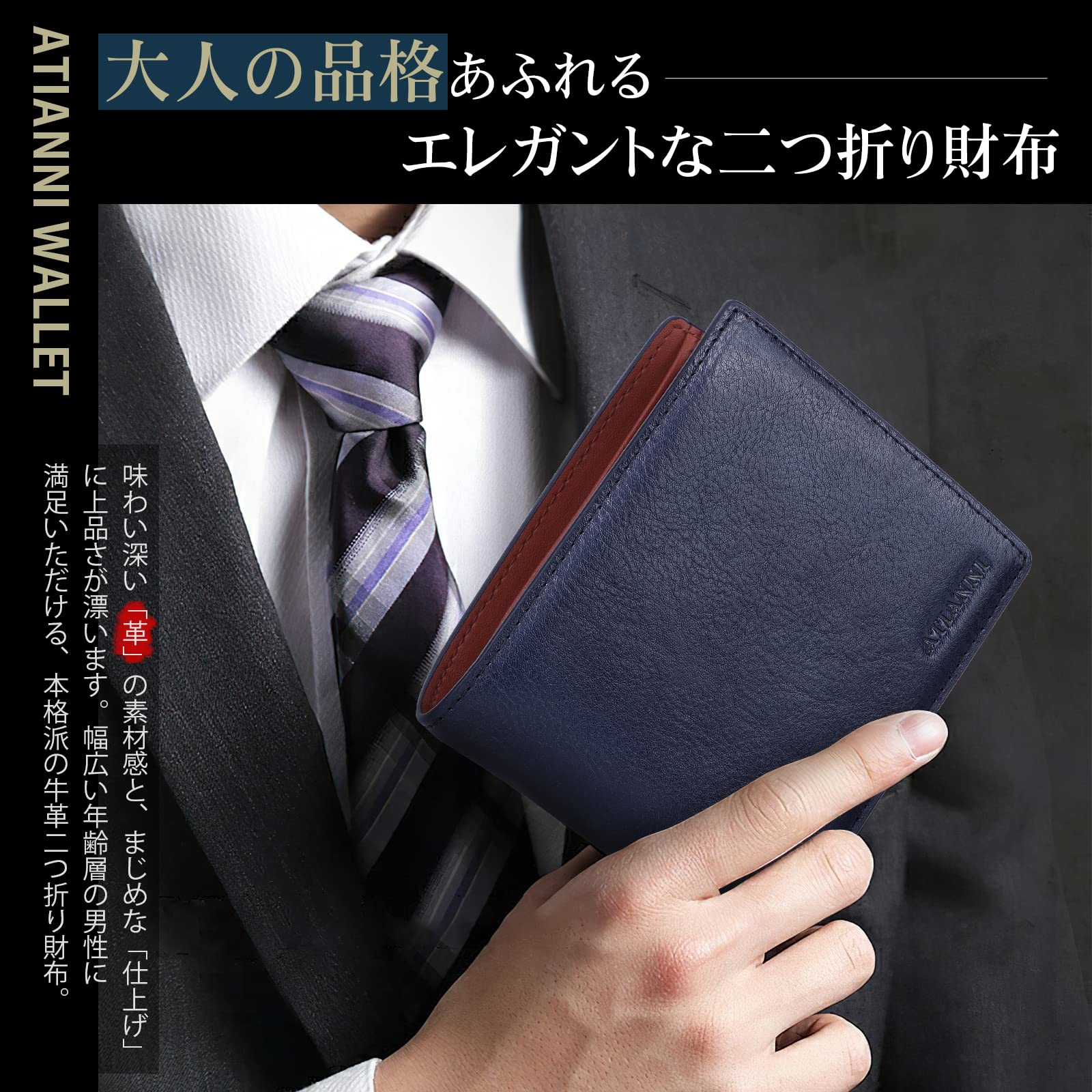 【数量限定】[ATIANNI] 財布 メンズ 2つ折り 本革 オイルドレザー 薄い ボックス型小銭入れ RFID&磁気スキミング防止 大容量 一流 の 財布 職人 が 作る 二つ折り財布 ふたつおり サイフ コンパクト (Blue) | asaRulu0511