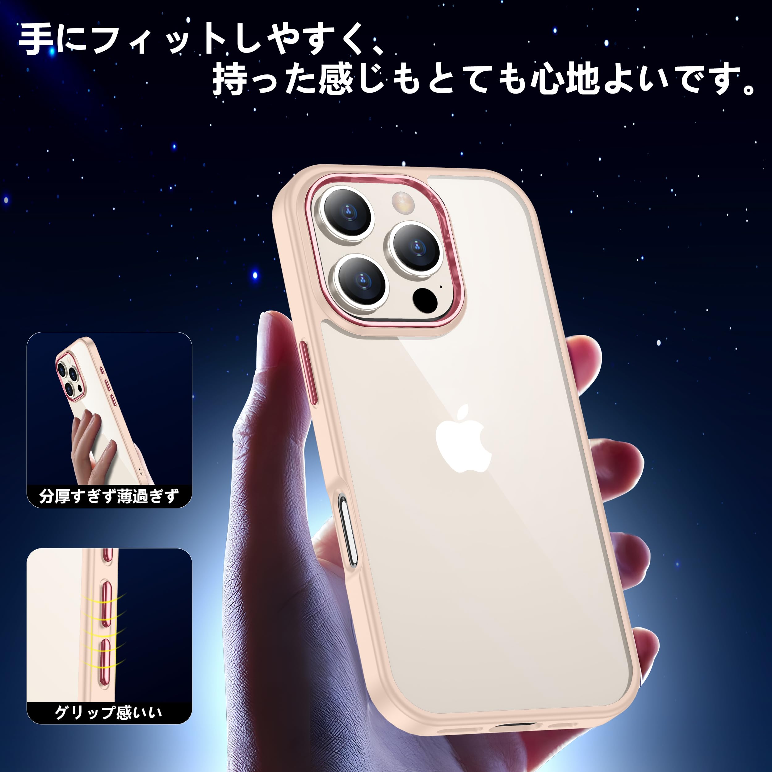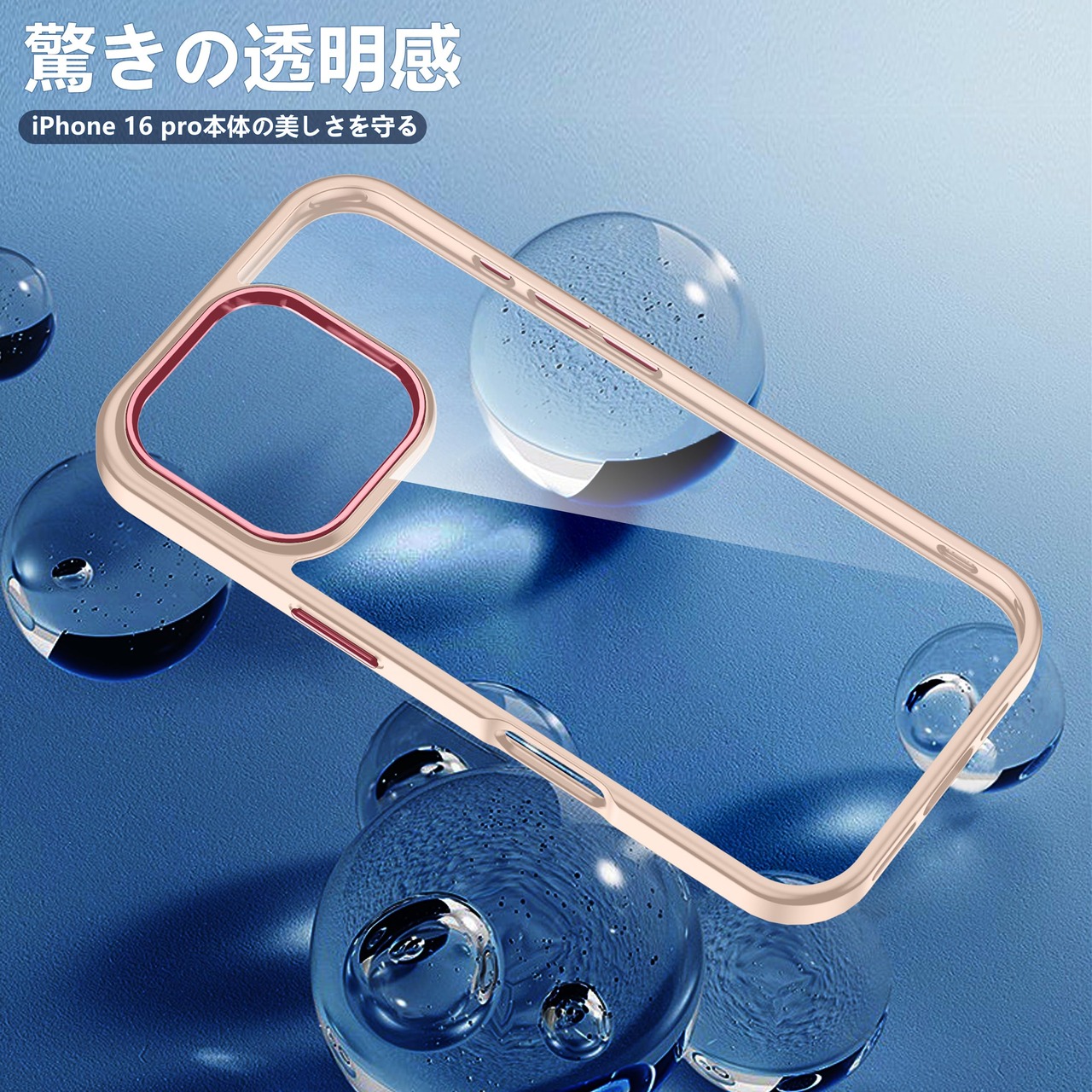 iPhone 16 Pro ケース ピンク レンズ·ガラス保護付き 黄変防止 アイフォン16 プロケース 耐衝撃 アイフォン 16 ぷろケース 指紋防止 落下防止 あいふぉん16 pro ケース 耐久性 ストラップホール付き 薄型 軽量 ソフト ワイヤレス充電対応 アイホン16pro(6.3インチ)カバー スマホ ケース