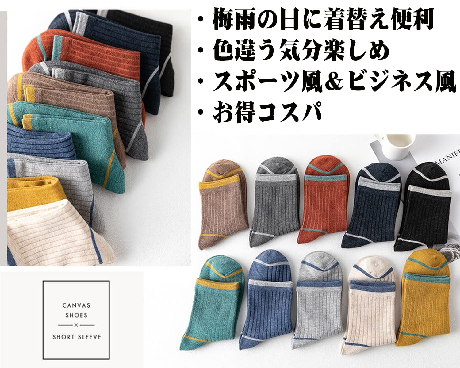 [Yazon] 靴下 メンズ 春 夏秋冬 カラフルソックス 10足セット 綿 通気吸汗 スポーツ ビジネスくつした おしゃれ 紳士 靴下 男性用 中厚手 クルーソックス 四季 リブ柄くつ下 25-27cm