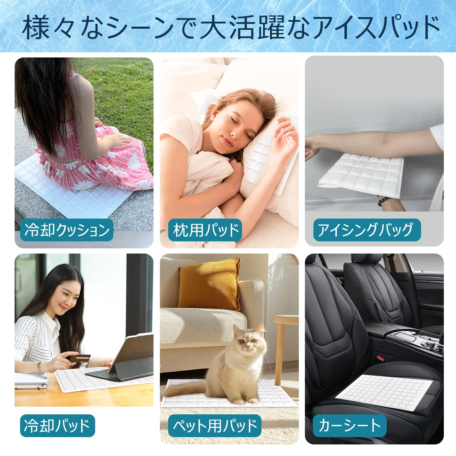 【幅広い用途】折りたたんで重さも約570gの軽量だから持ち運びにも便利で、運転時、お釣り、キャンプ、エアコンが効きづらいオフィス等様々なシーンの暑さ対策に最適。在宅ワークやドライブや赤ちゃん 暑さ対策の赤ちゃん 氷枕やベビーカー冷却シートの他、愛犬や愛猫、大切なペット ひんやりマットとしてさまざまなシーンで活用できる冷却グッズです。