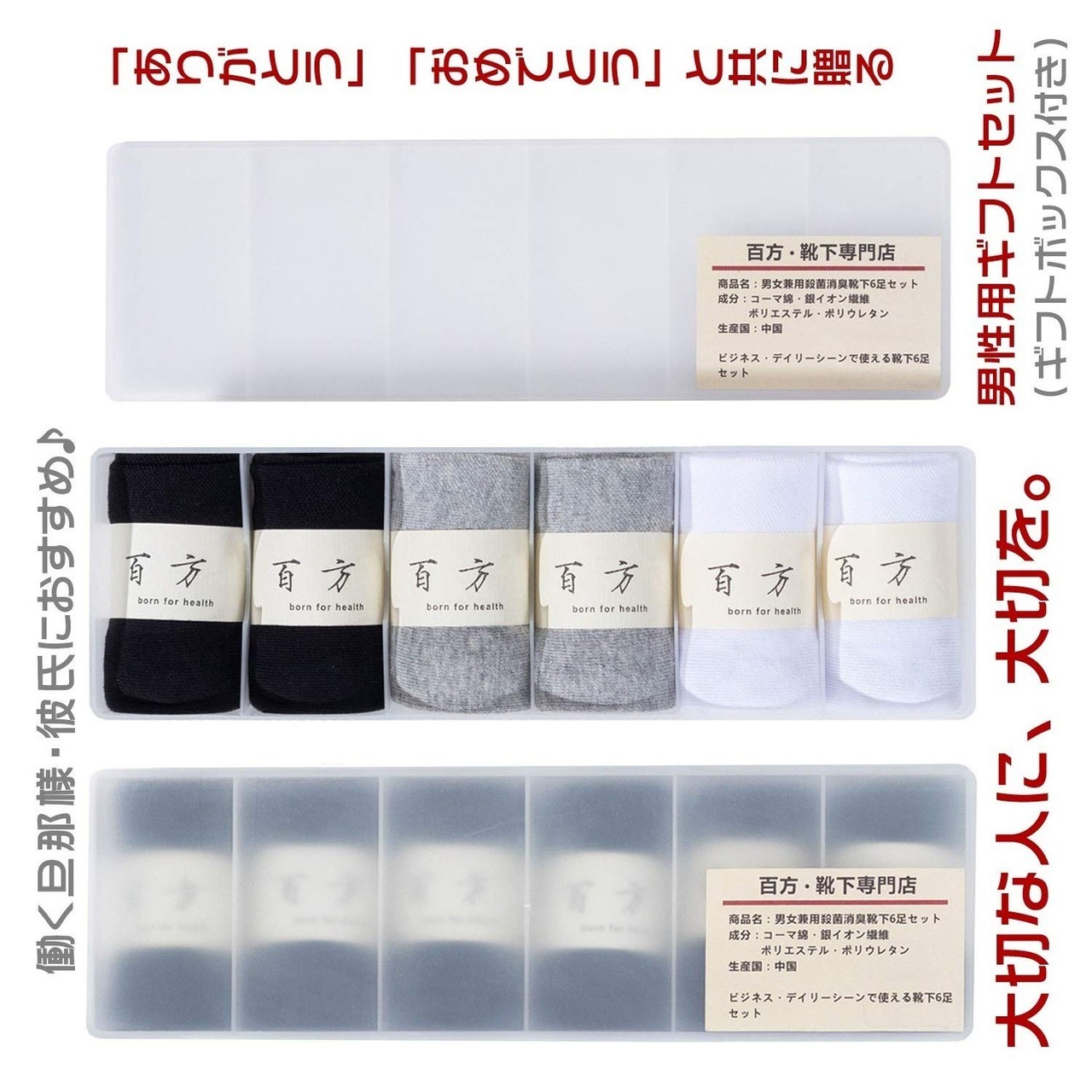 【在庫処分】(百方)【強力消臭靴下】ミドル丈ソックス ギフトBOX付き6足組セット メンズ 靴下 臭わない 消臭 無臭 男女兼用 リブ ビジネス カジュアル 高級綿40コーマ糸 銀イオン…
