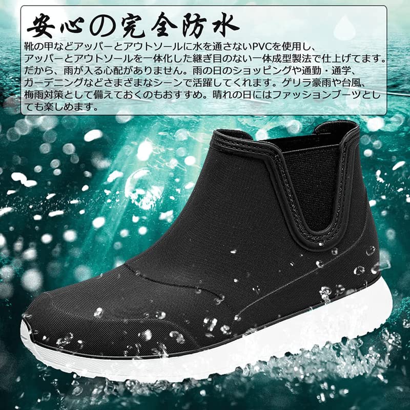 [Hanani] レインブーツ レディース レインシューズ 完全防水 レディース 雨靴 ショートブーツ チェルシーブーツ サイドゴア 短靴 軽量 通勤 梅雨対策 台風でも対応 晴雨兼用 23.0cm-26.0cm