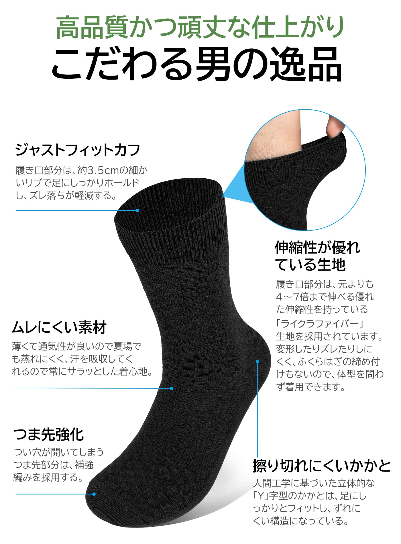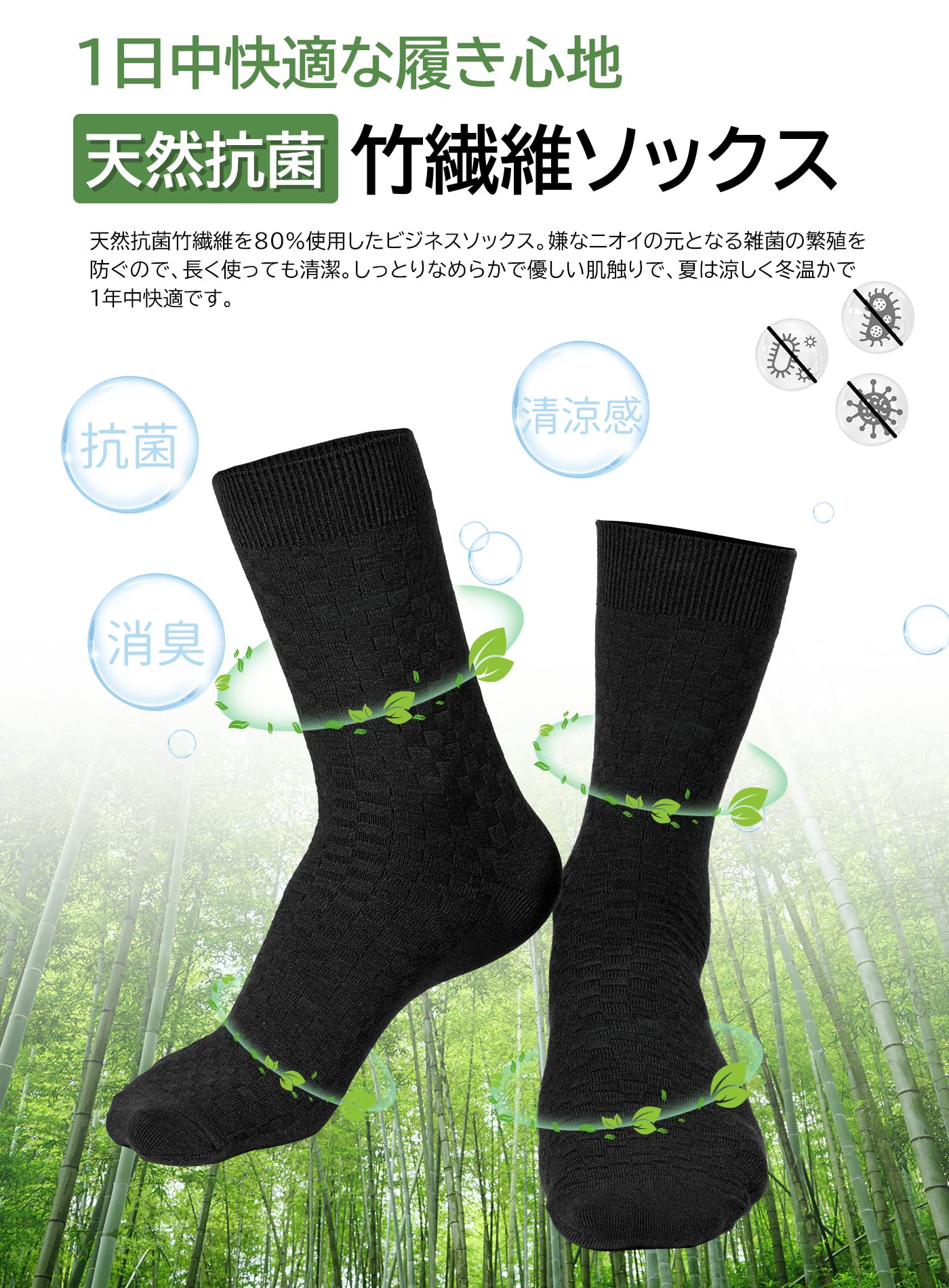 [HASOME] 靴下 メンズ ビジネス ソックス 5足セット 夏用 薄型 竹繊維 抗菌 消臭 通気性 蒸れない 柔らかい 紳士靴下 通勤 通学 くつ下