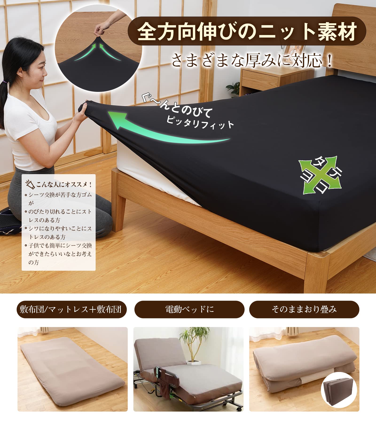 【3Dストレッチ・超柔らか】 ボックスシーツ シングル~スモールシングル兼用 シーツ シングル ベッドシーツ シングル マットレスカバー シングル のびのびシーツ フィットシーツ ベッドシーツ マットレス・敷ふとん兼用 ベッドカバー オールシーズン 超吸水速乾 抗菌防臭 通気性 ブラック