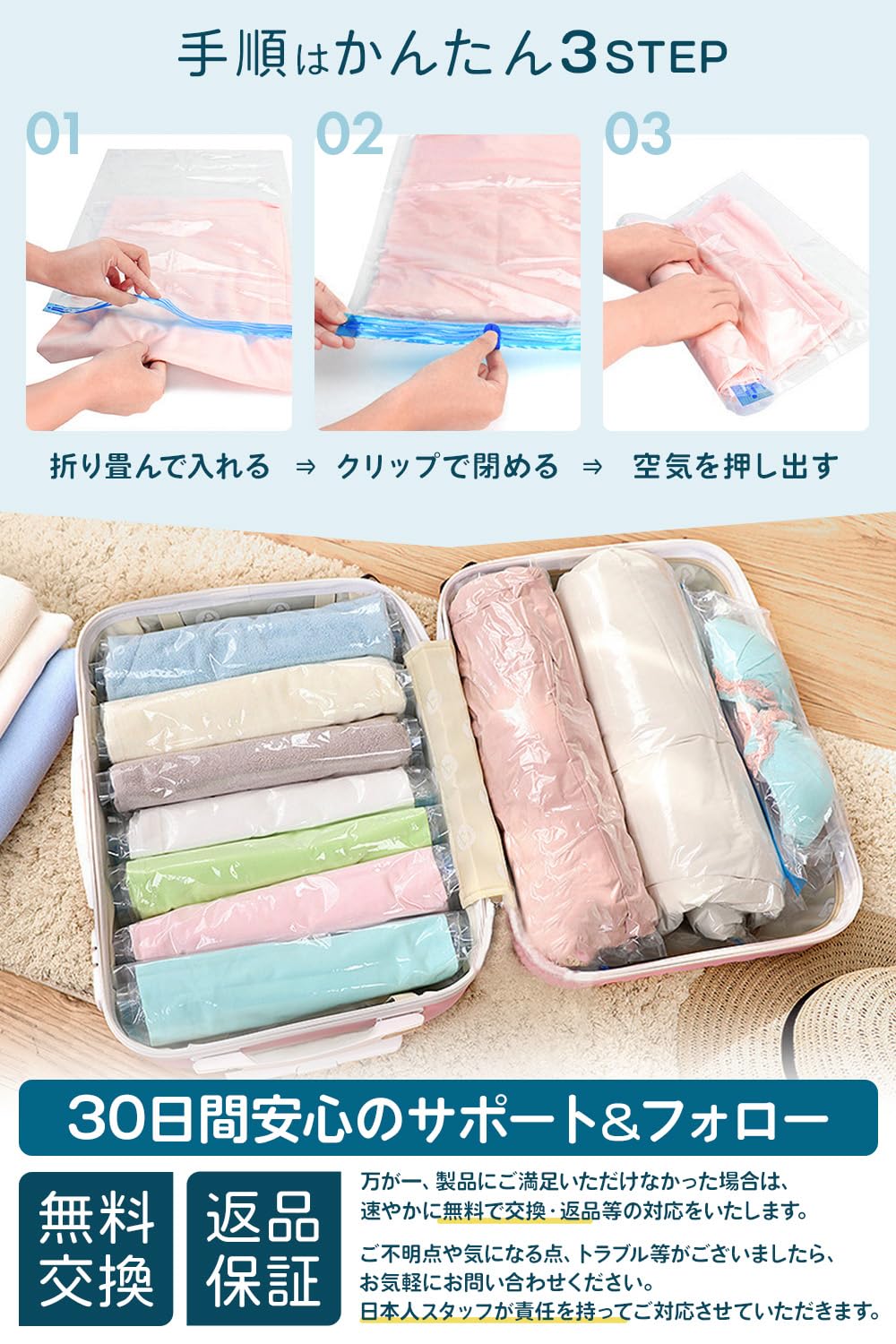 【在庫処分】【荷物の量75%圧縮】 手で巻くだけ 圧縮袋 耐久性 二重ジップ 漏れにくい 旅行 出張 収納 省スペース 【くるくるペッタン】 (35x50cm/40x60cm/50x70cm(3サイズ 各4枚 合計12枚入り))